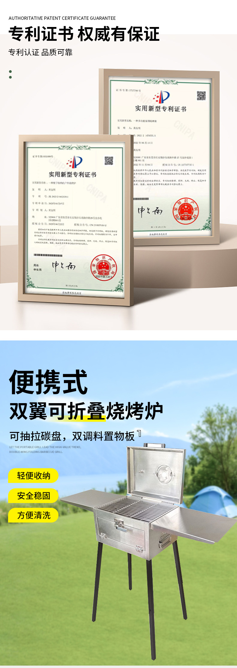 야외 접이식 바베큐 그릴 스테인레스 스틸 접이식 바베큐 도구 상자 스타일 그릴 조절 가능한 바닥 바베큐 그릴 도매