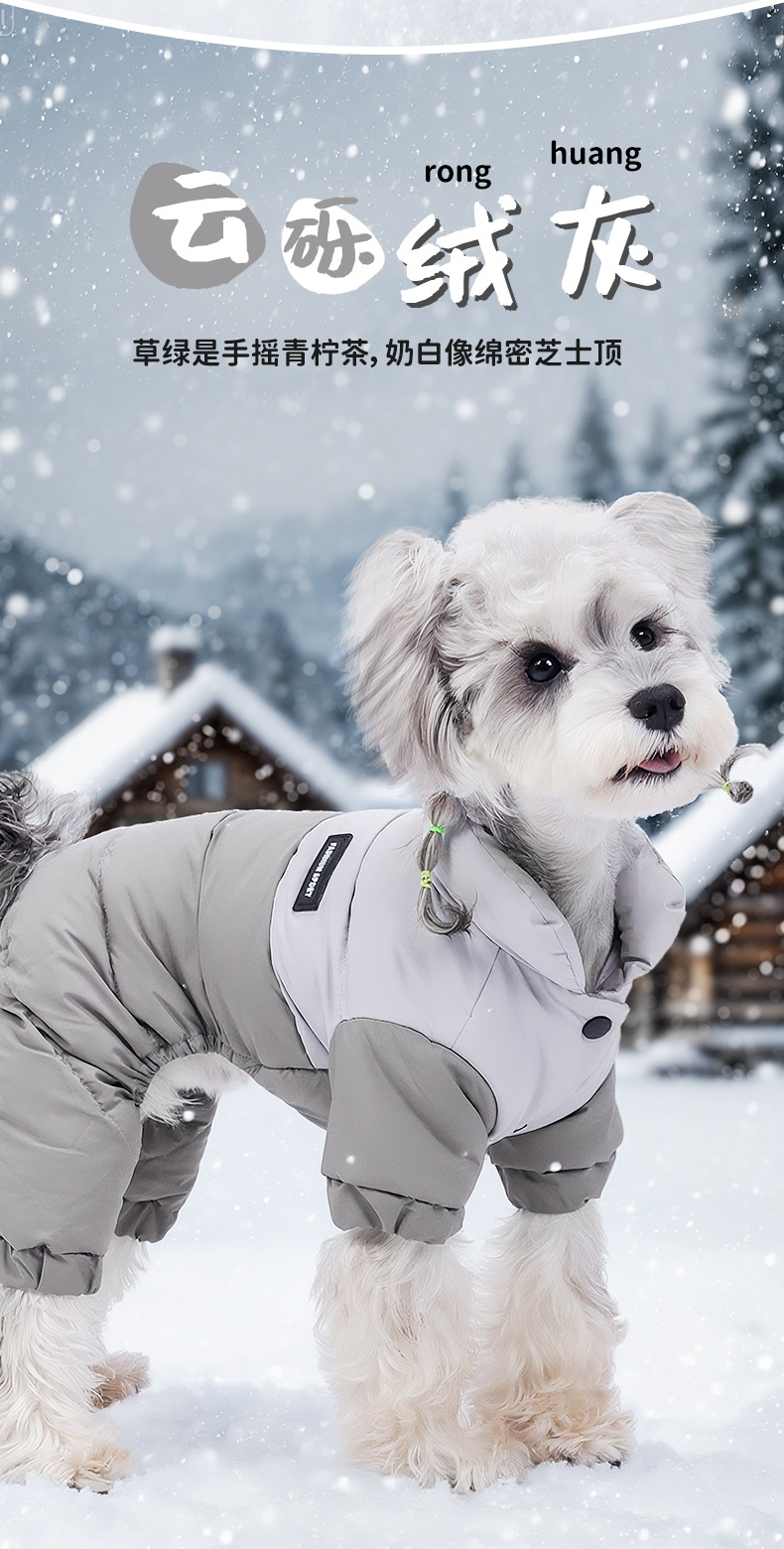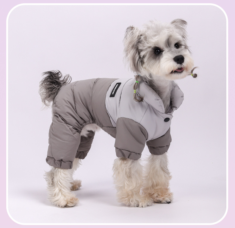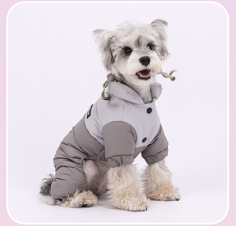 애완동물 면옷, 겨울 따뜻하고 두꺼운 네발 면옷, 그래핀 방풍 개옷, 견인 가능 방수 테디