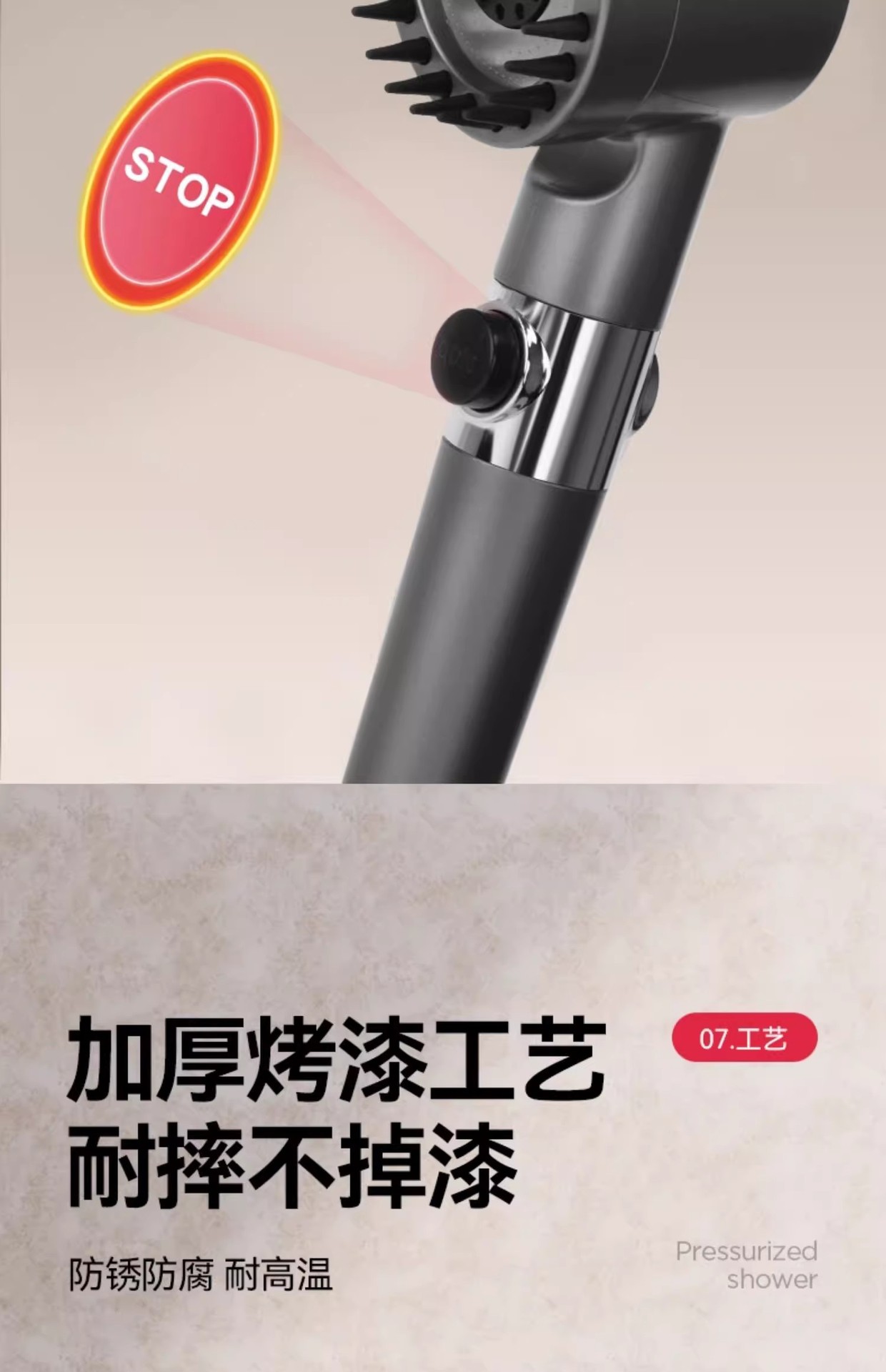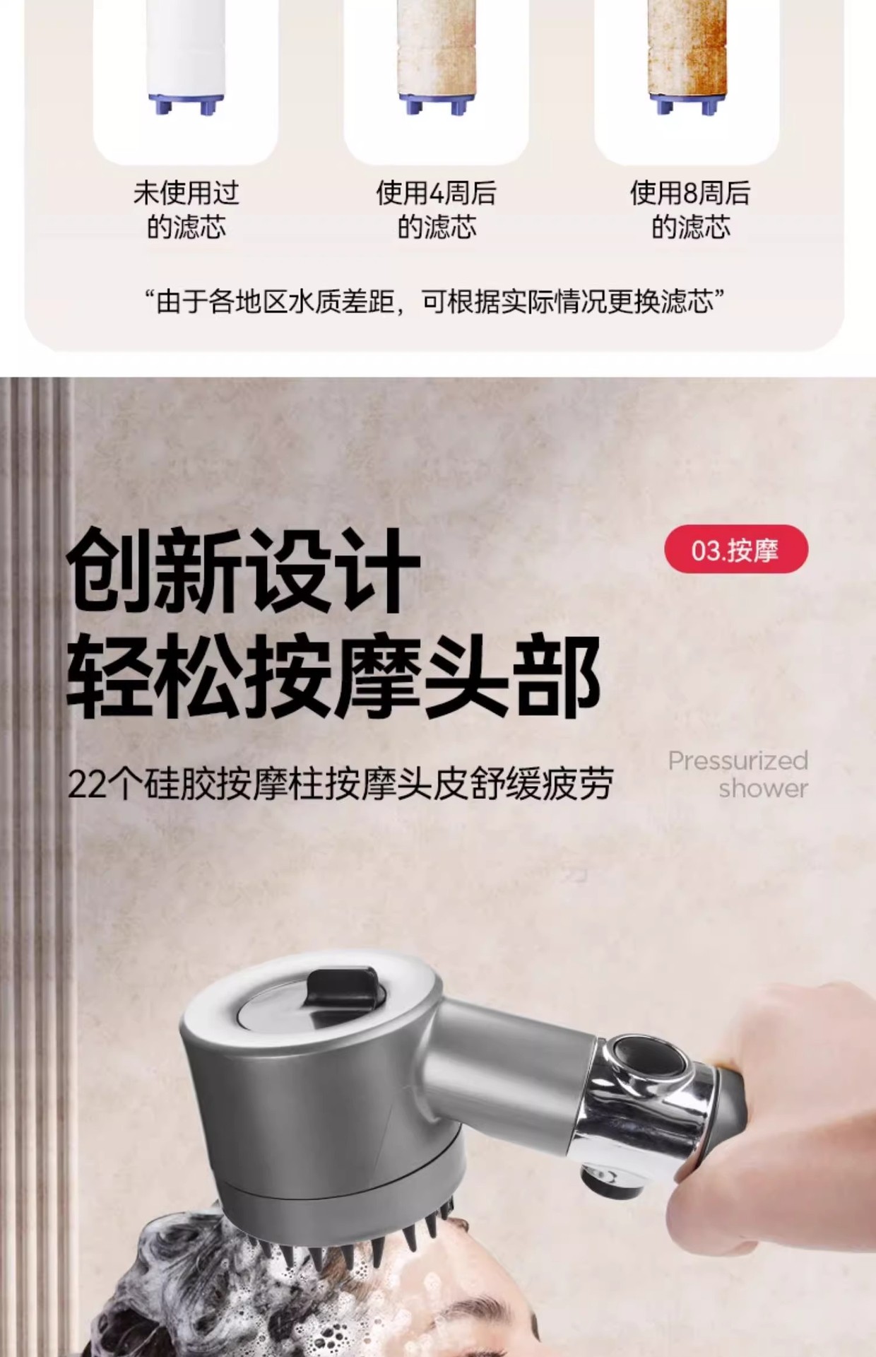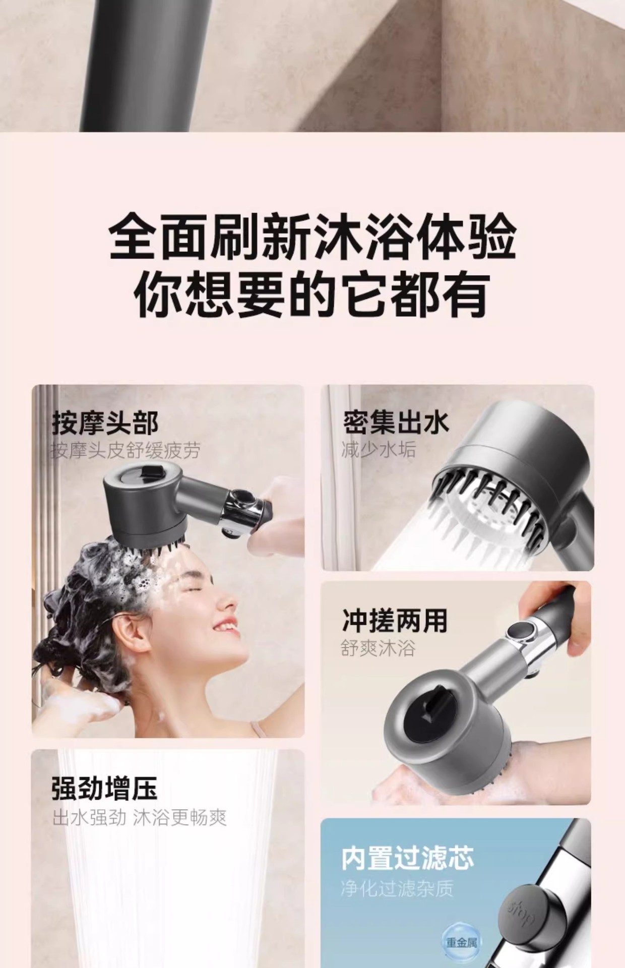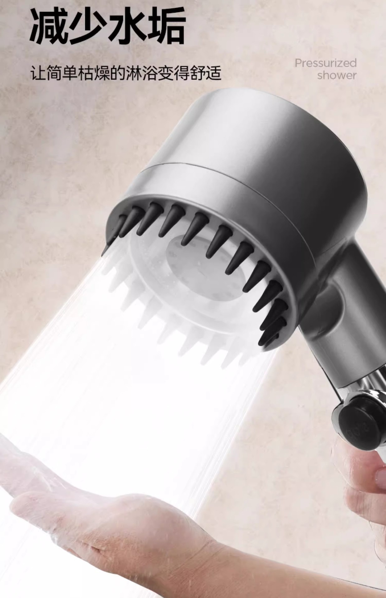 슈퍼차저 3단 핸드헬드 샤워 필터 노즐, 욕실 샤워용 초강력, 강압 마사지 레인 샤워 세트스토어 가기