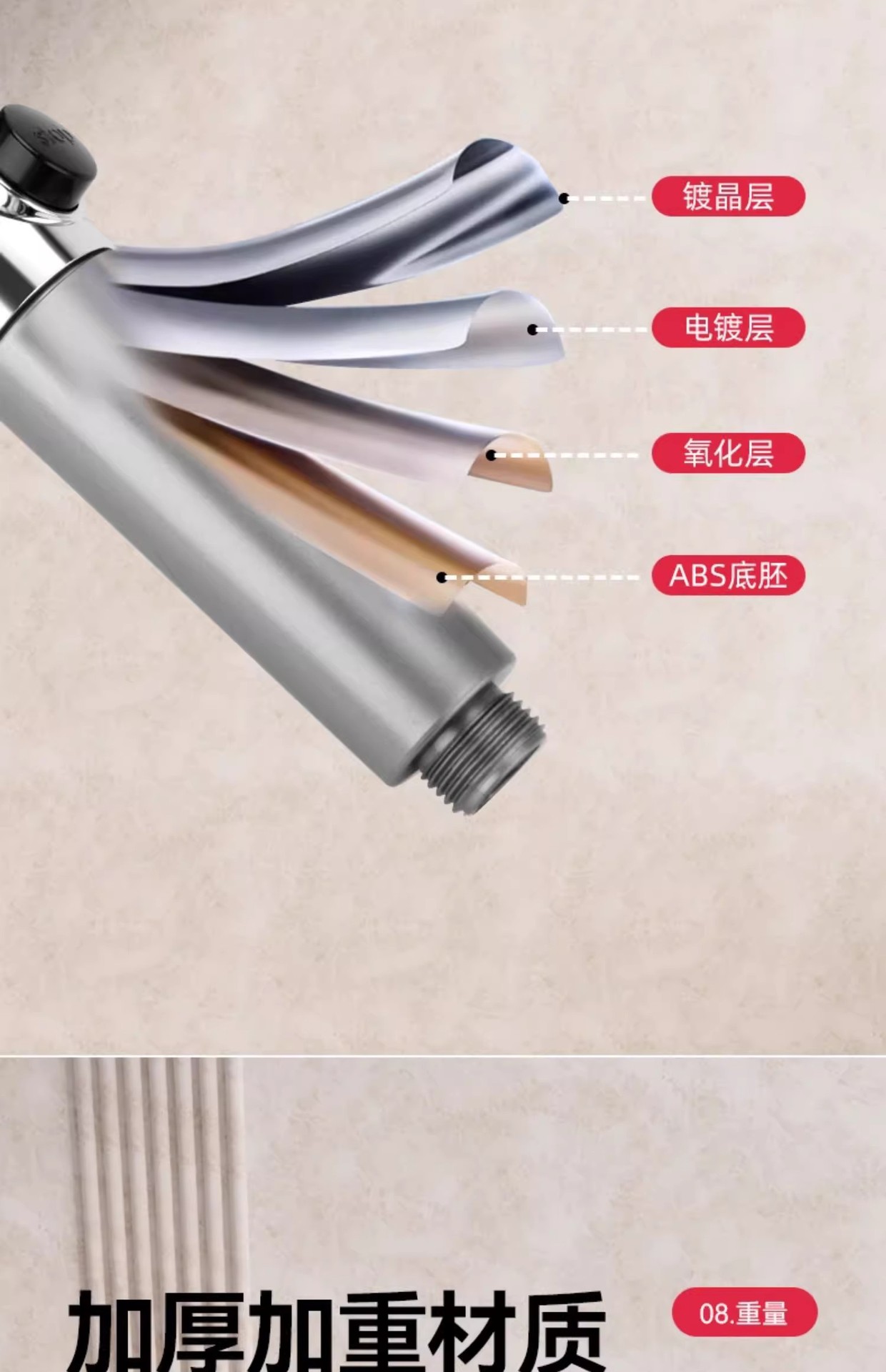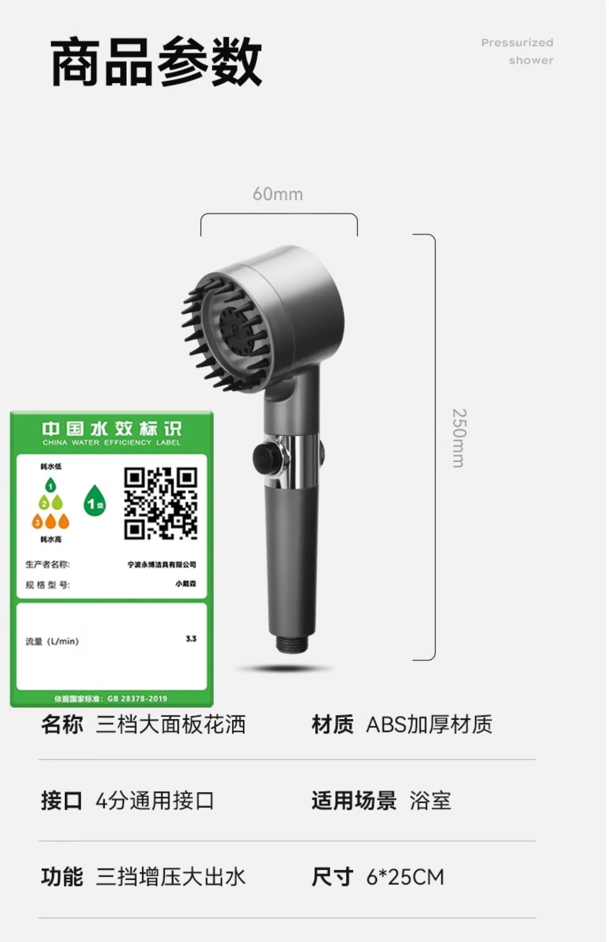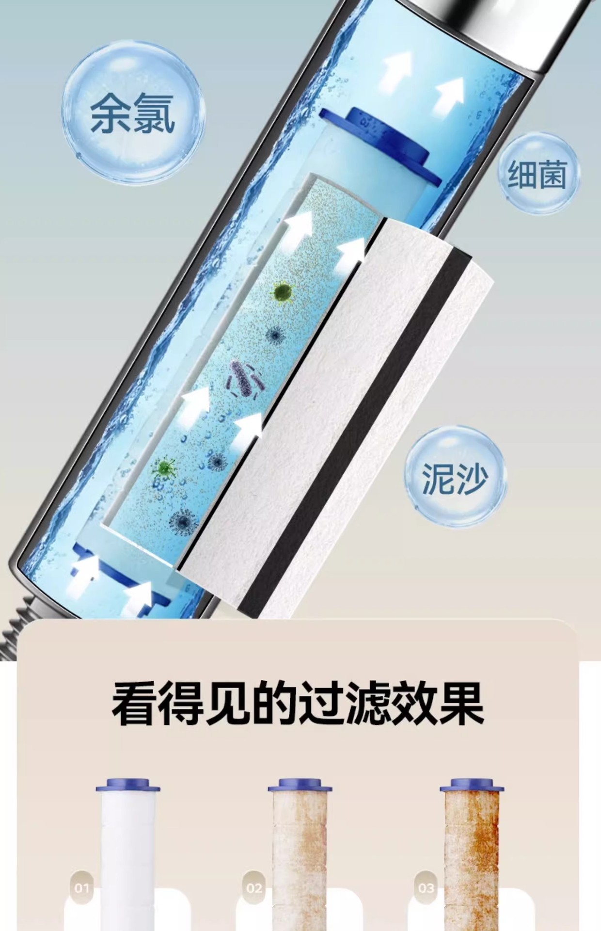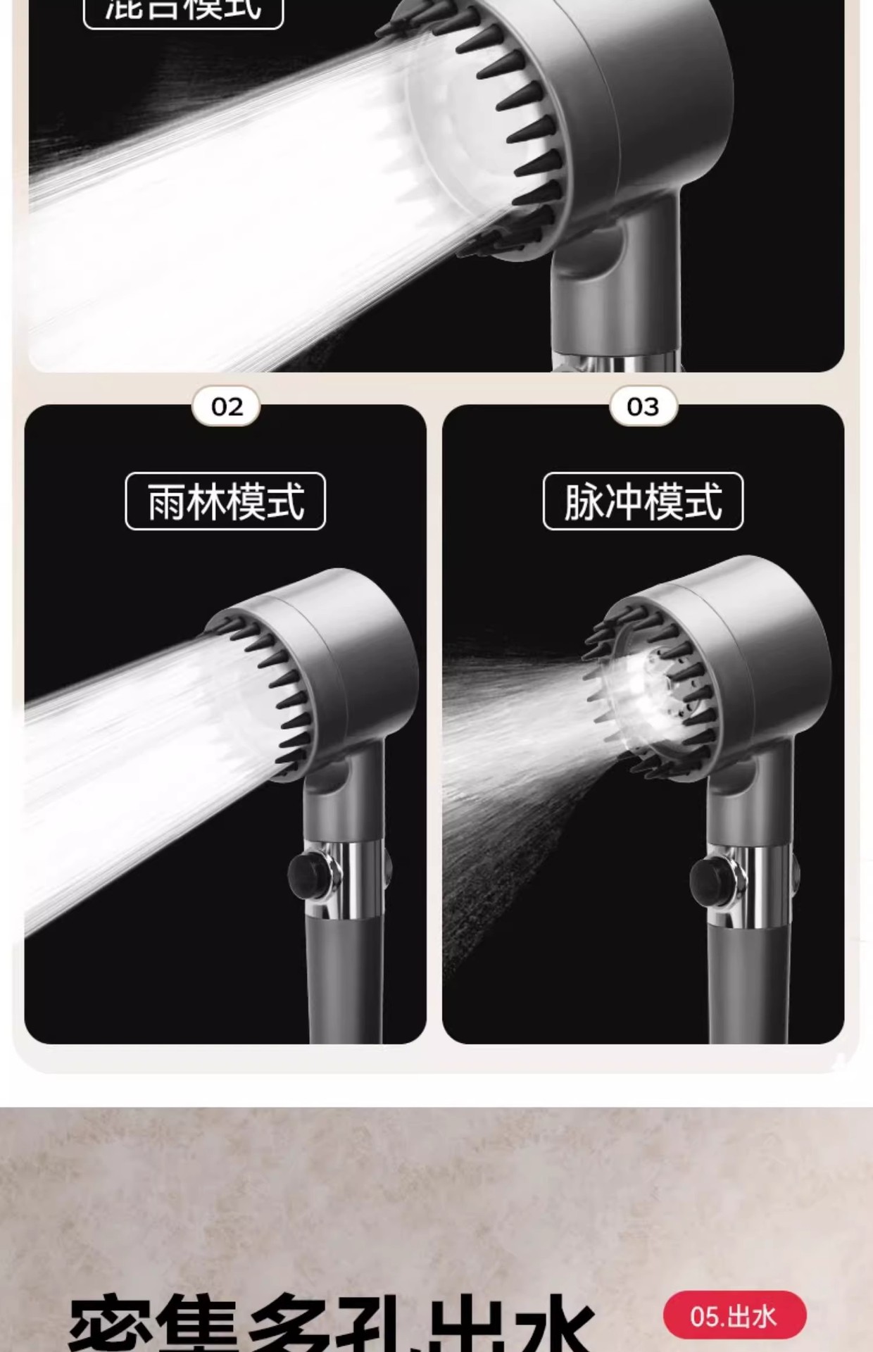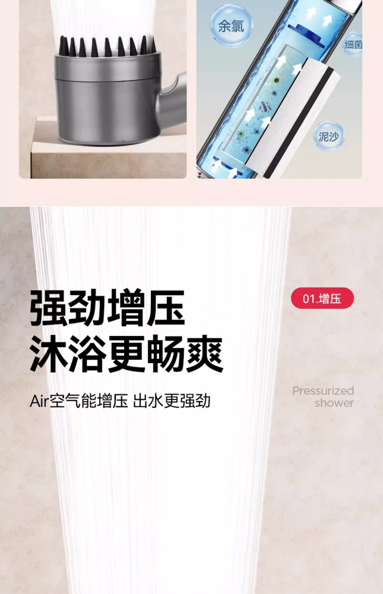 슈퍼차저 3단 핸드헬드 샤워 필터 노즐, 욕실 샤워용 초강력, 강압 마사지 레인 샤워 세트