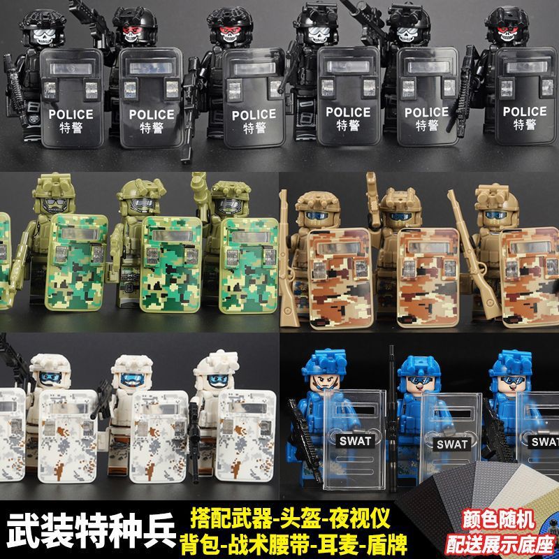 국경 간 특수 경찰 워울드 워프 특수 부대 빌딩 블록 인형 교육 어린이 조립 모델 대외 무역 장난감 관절 이동식