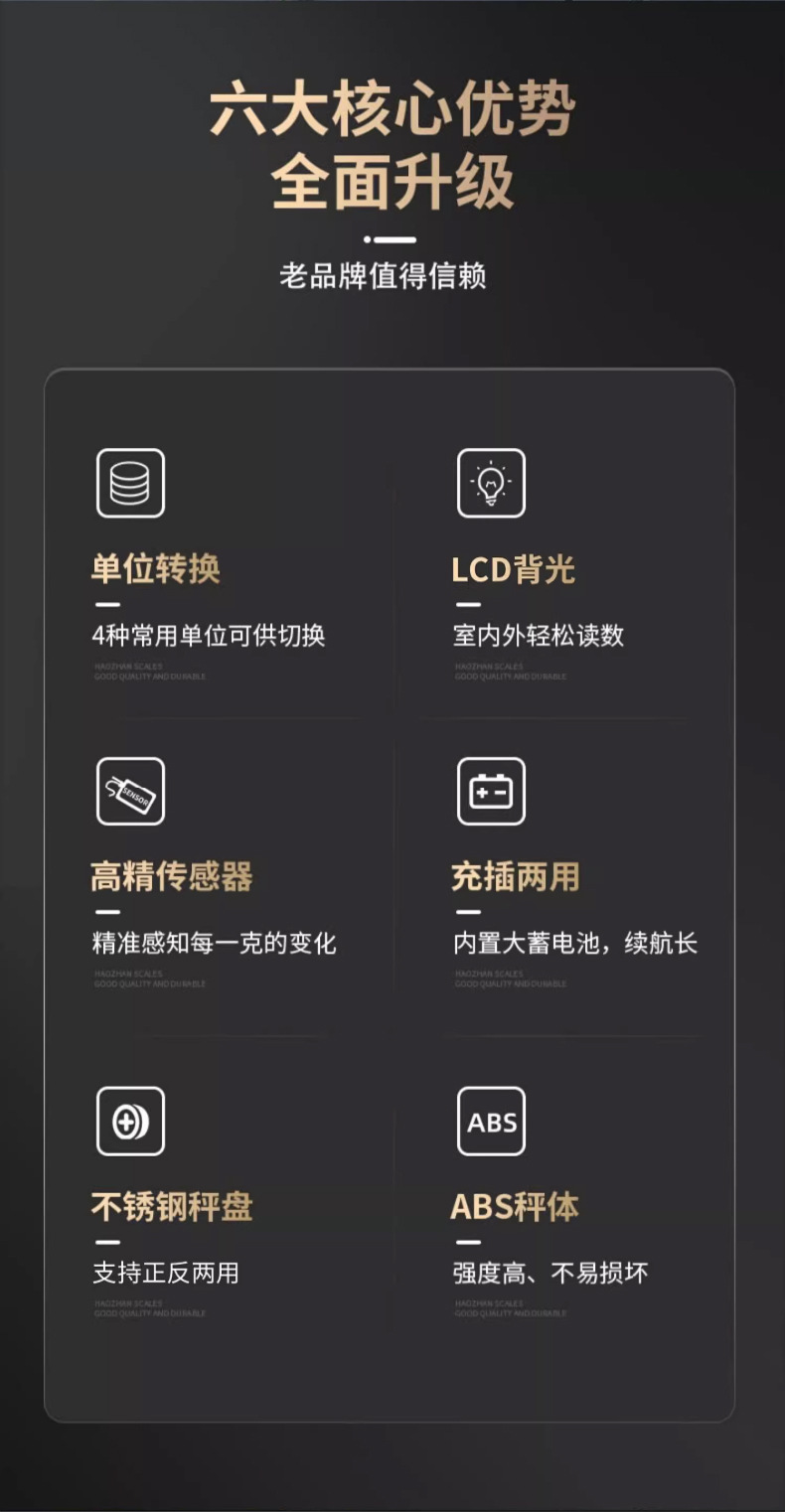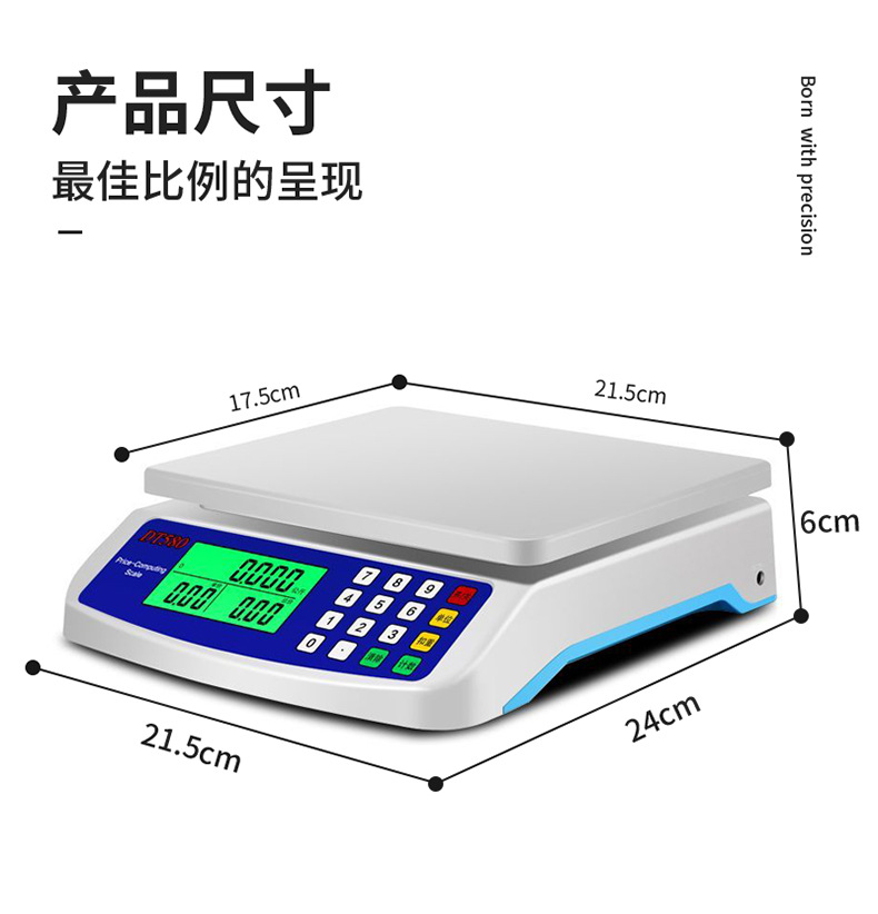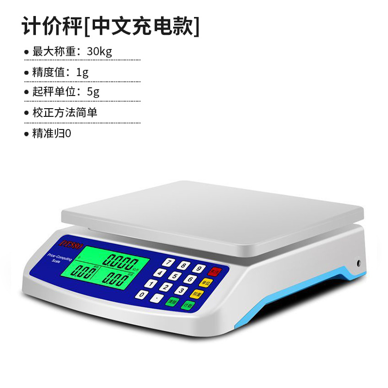• 가격 척도 [충전 모델]에는 충전기가 포함되어 있으며 30kg/1g의 고정밀도를 측정할 수 있습니다.