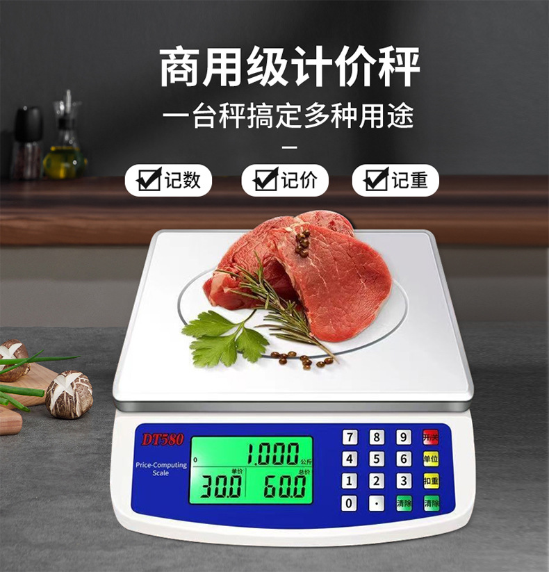• 가격 저울 [배터리 모델]에는 배터리가 포함되어 있으며 30kg/1g의 고정밀도를 측정할 수 있습니다.