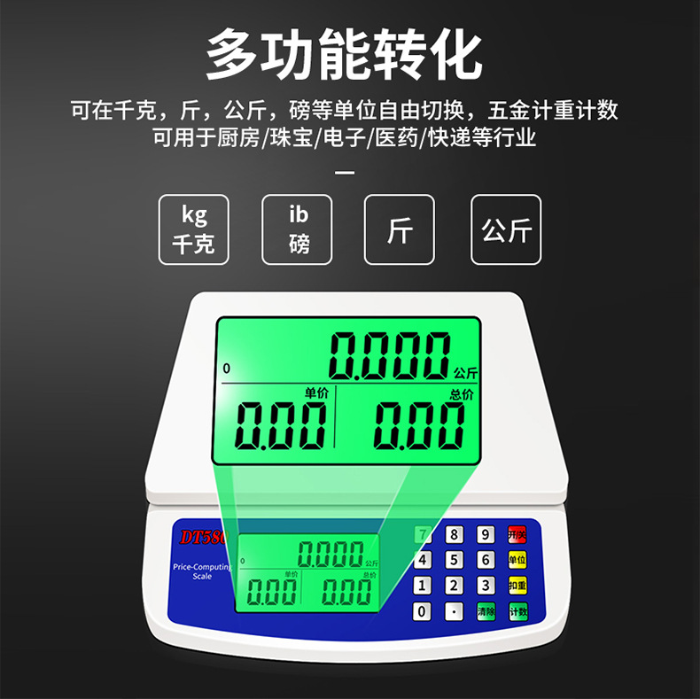 • 양면 디스플레이 가격 저울 [플러그인 모델] 플러그인 장치와 함께 제공되며 30kg/1g의 고정밀도를 측정할 수 있습니다.