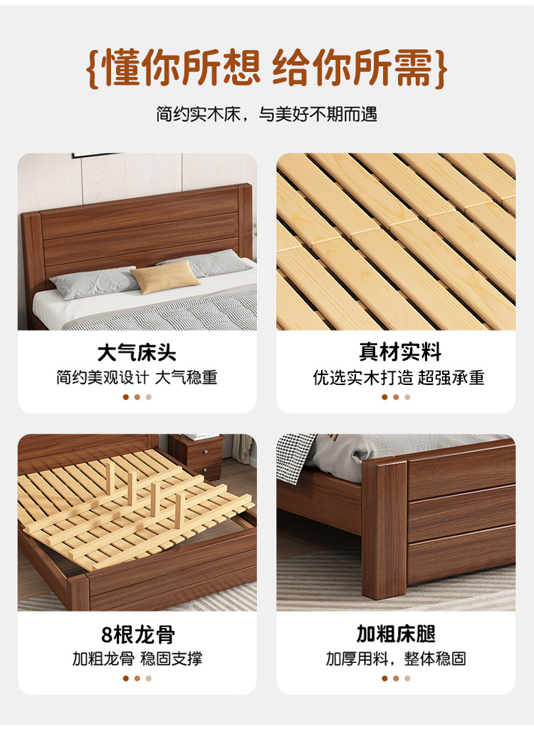 경제적인 순수 원목 침대 1.6m 8 더블 침대 침실 가정용 수납 침대 1.2m 임대 싱글 g&스토어 가기