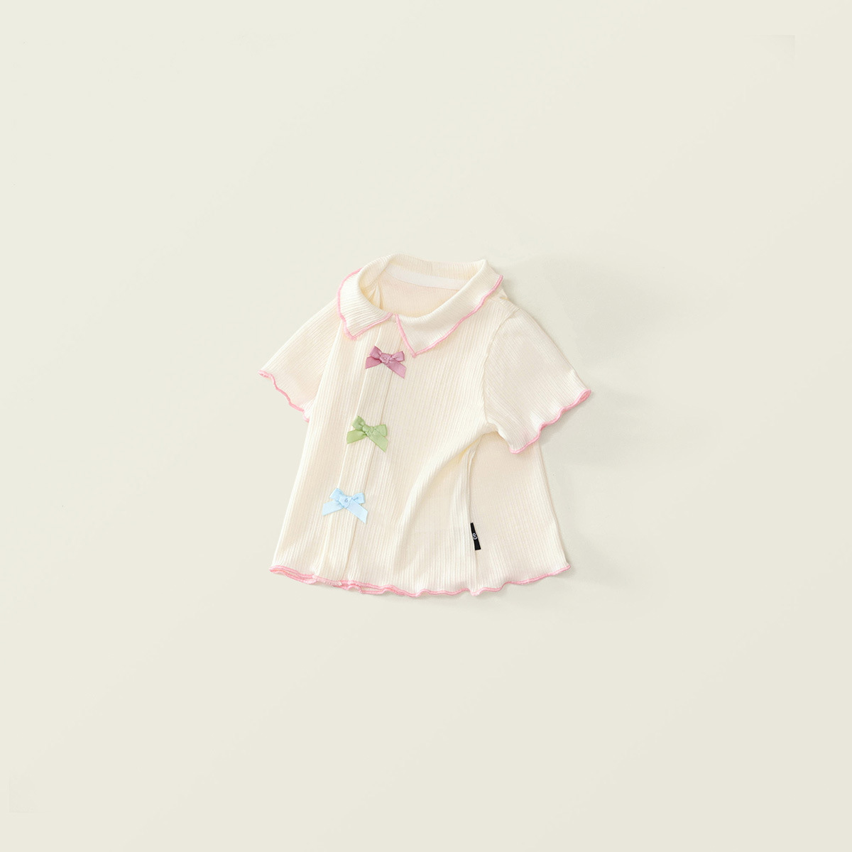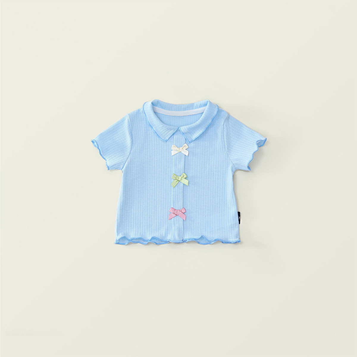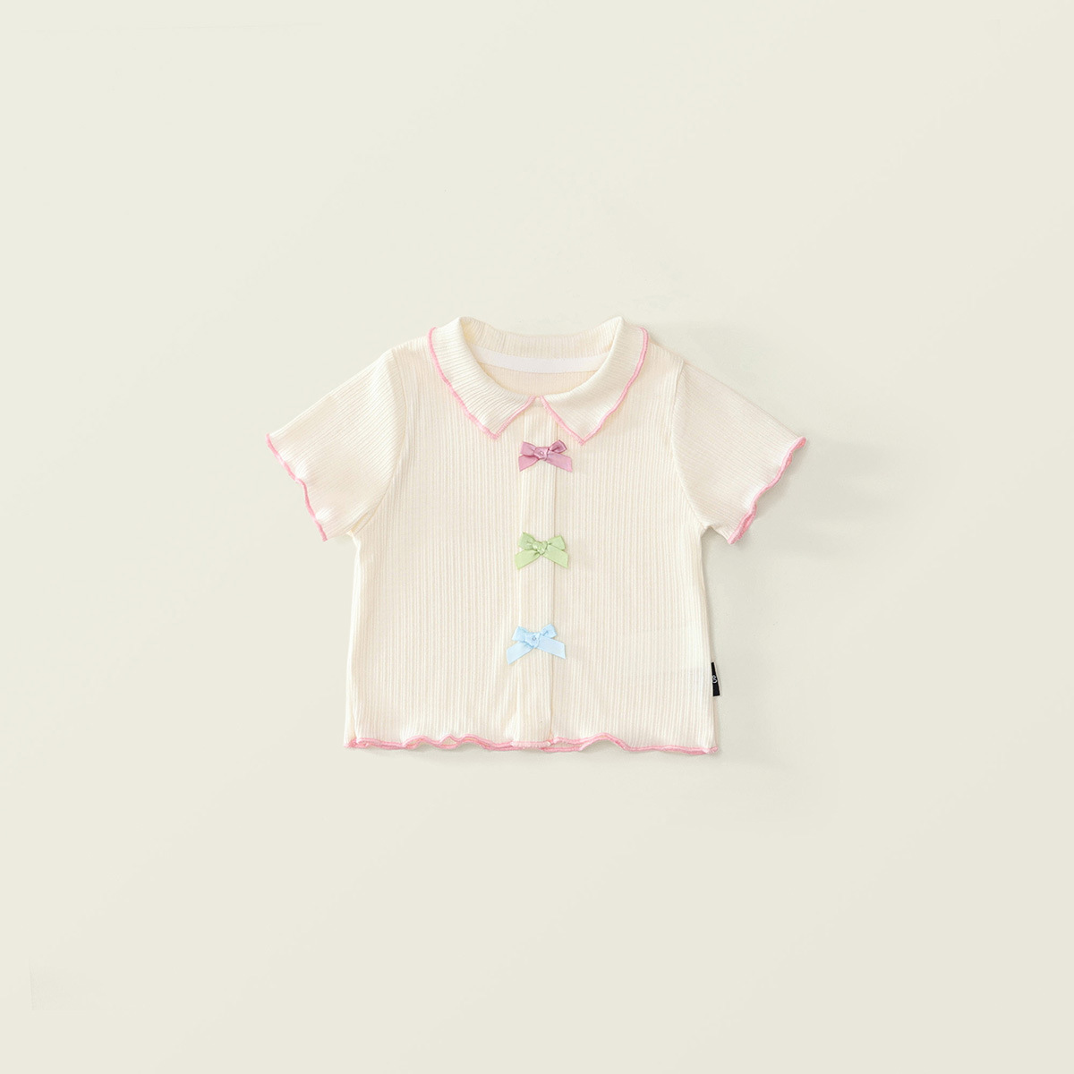여자 반팔 티셔츠 여름 2025 새로운 스타일 아기 소녀 달콤한 스타일 활 여름 얇은 탑