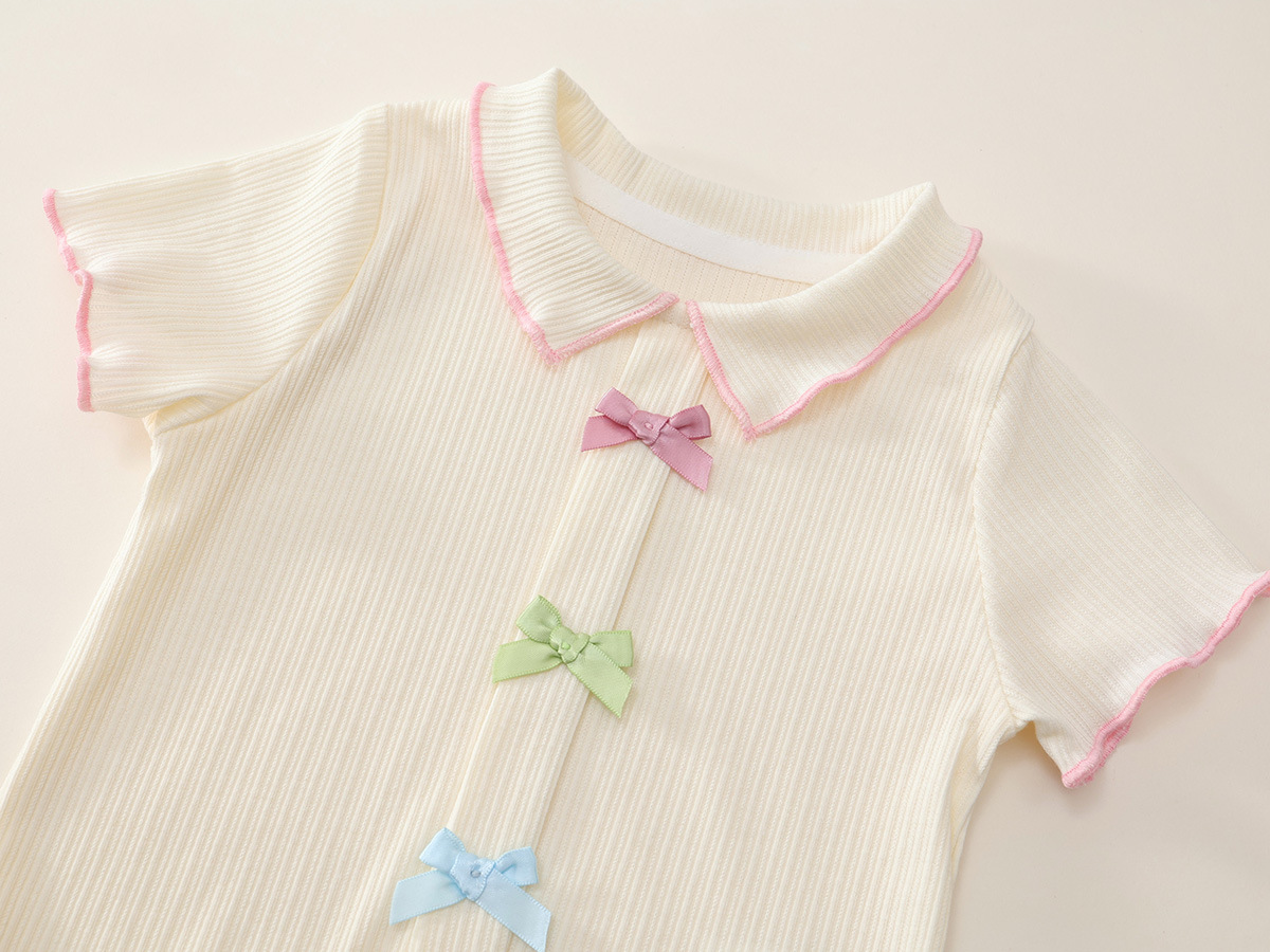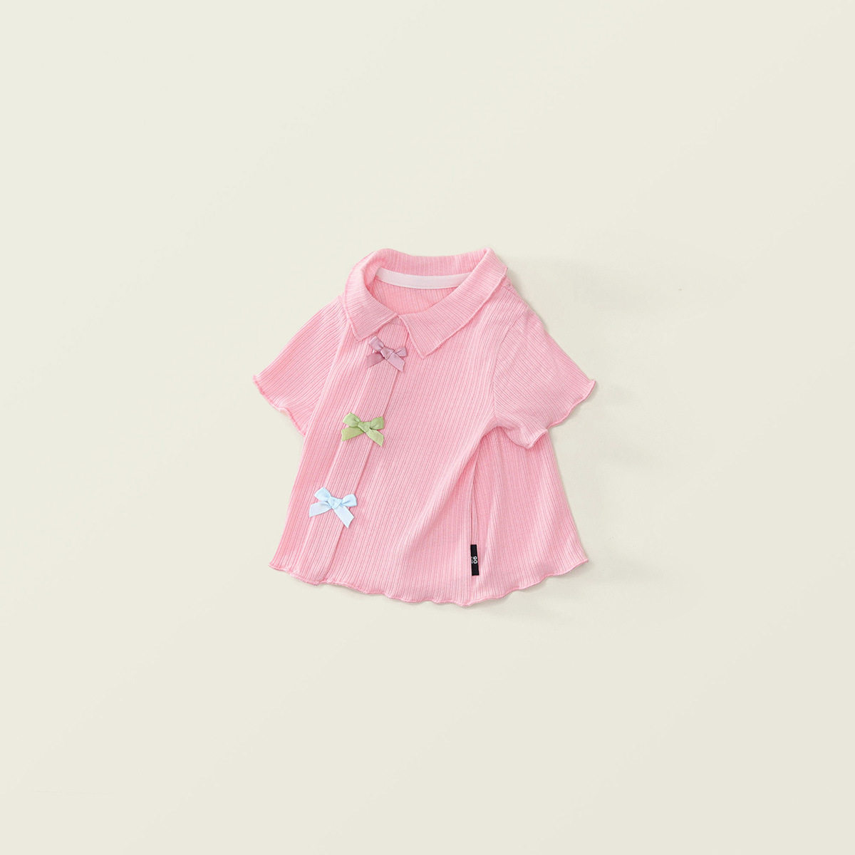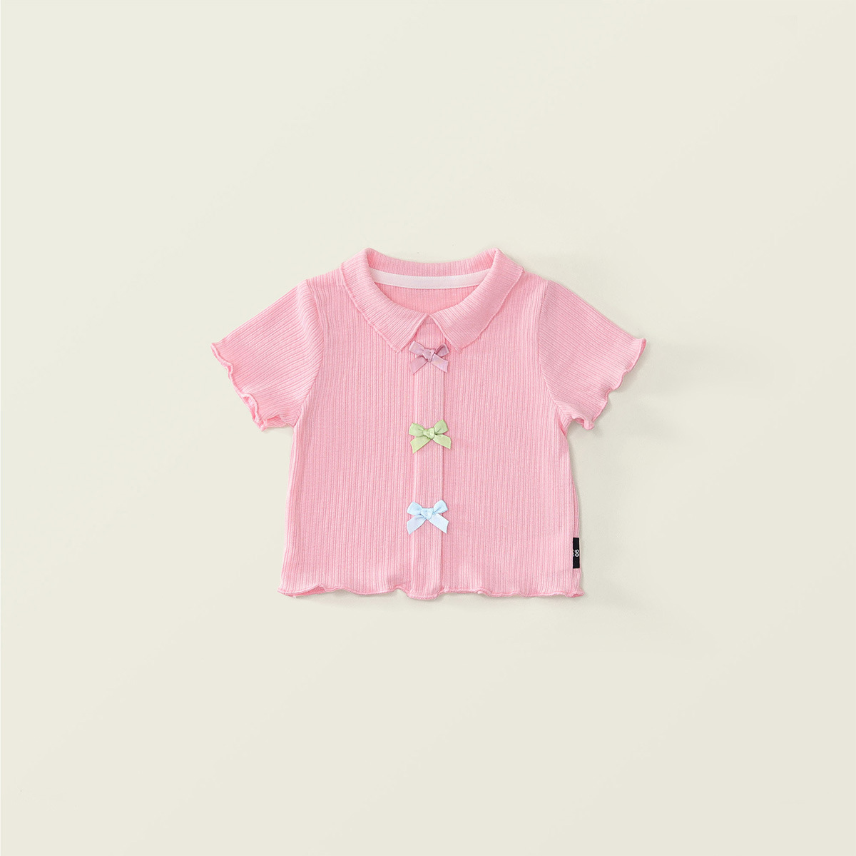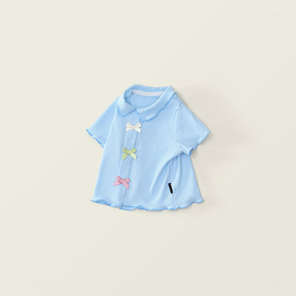 여자 반팔 티셔츠 여름 2025 새로운 스타일 아기 소녀 달콤한 스타일 활 여름 얇은 탑