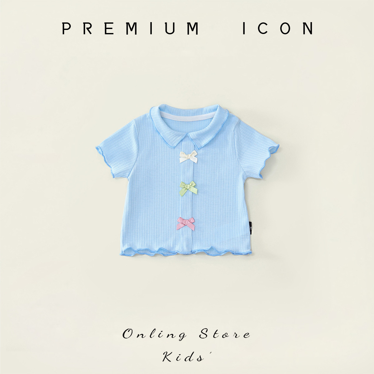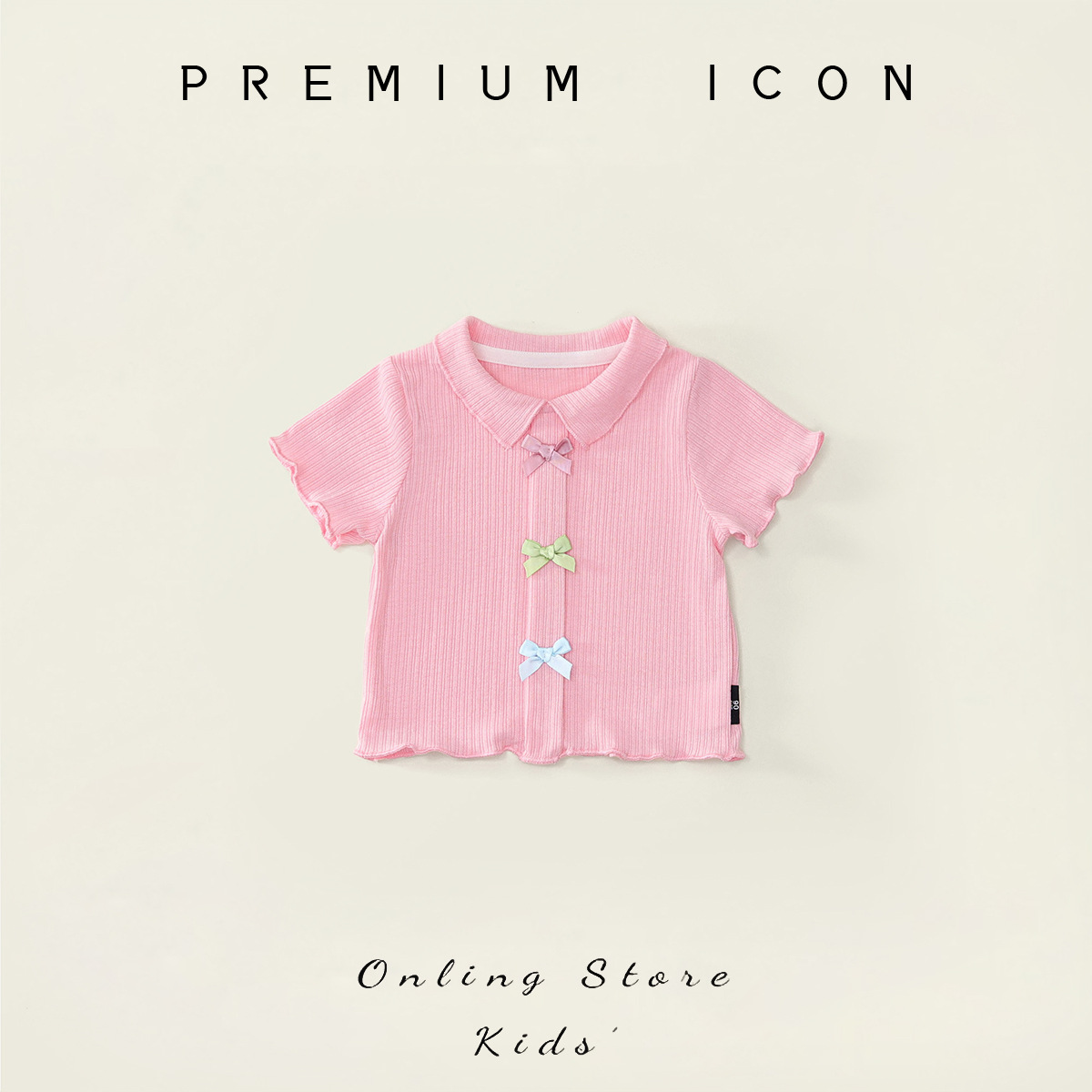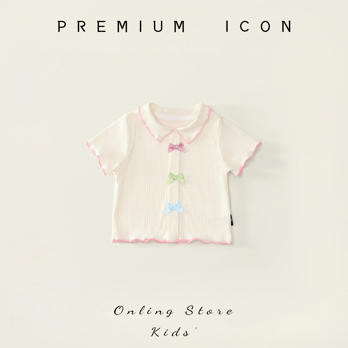 여자 반팔 티셔츠 여름 2025 새로운 스타일 아기 소녀 달콤한 스타일 활 여름 얇은 탑스토어 가기