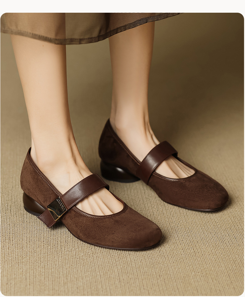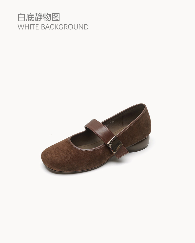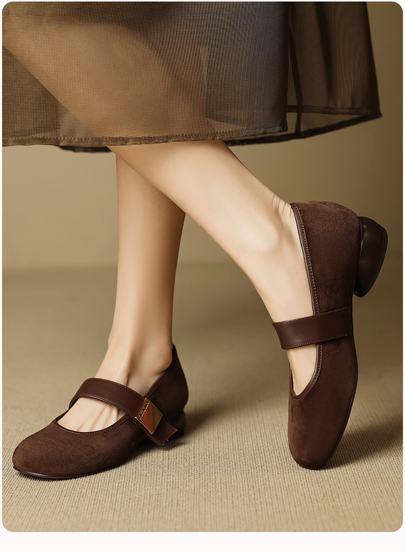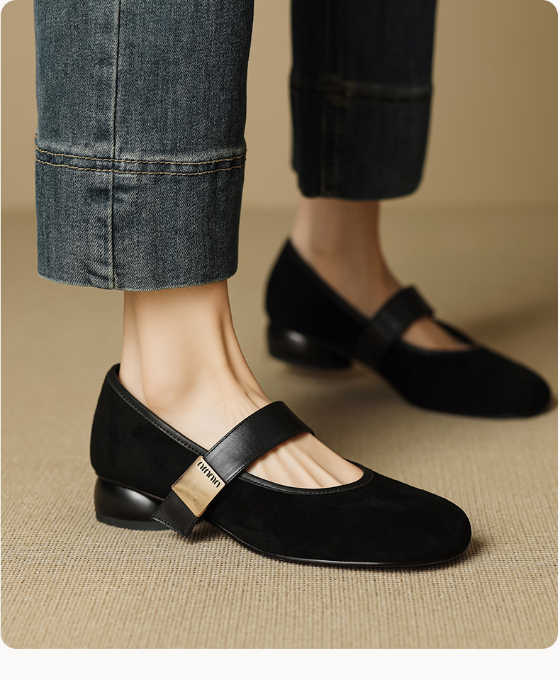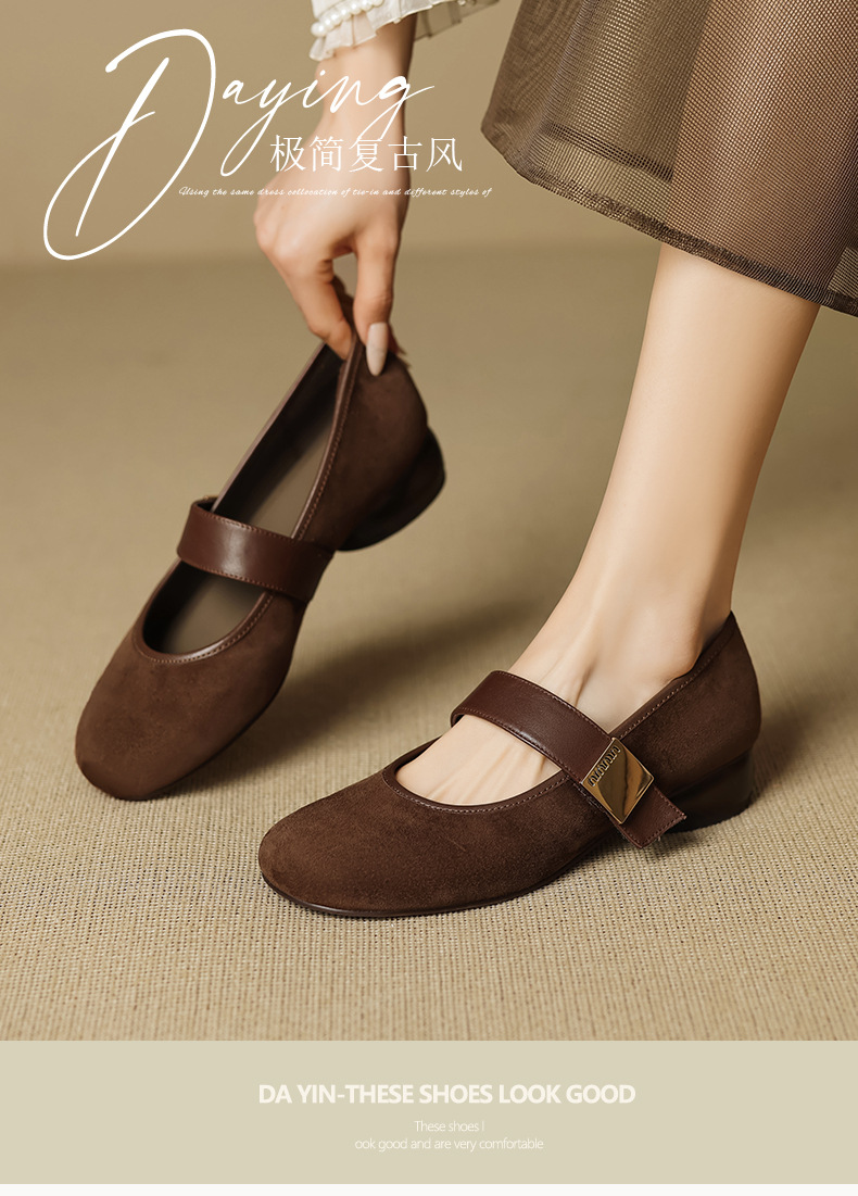 2025 봄 신상 반투명 양가죽 메탈 버클 라운드 토 두꺼운 굽 펌프스 여성용 레트로 원 스트랩 메리 제인 슈즈스토어 가기
