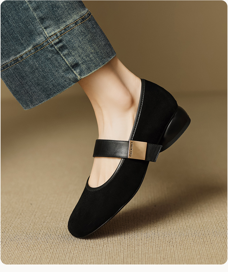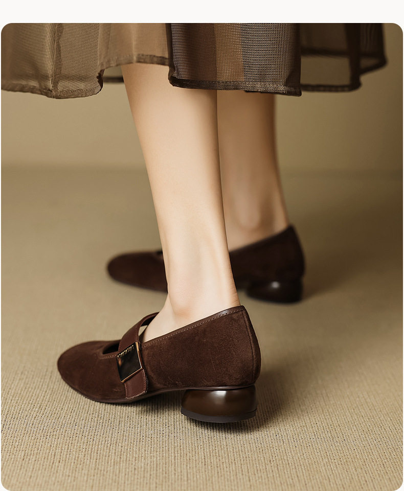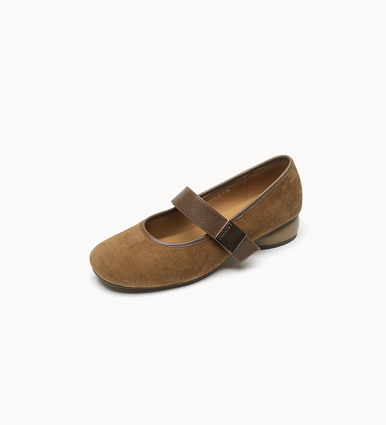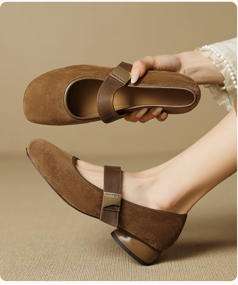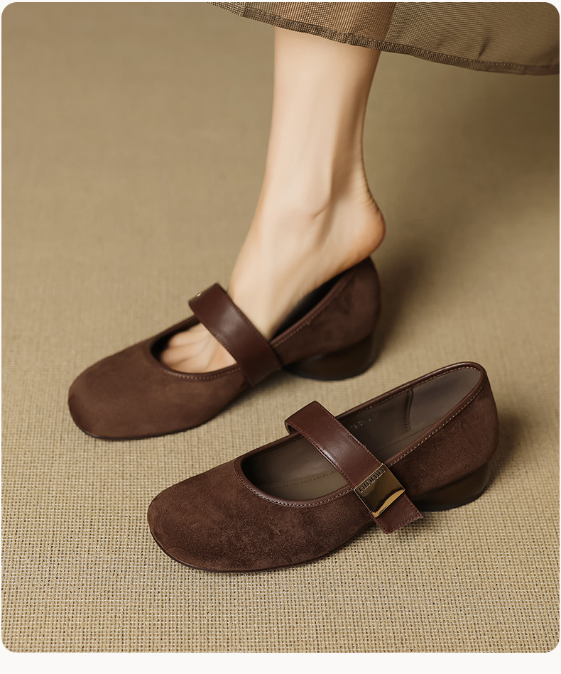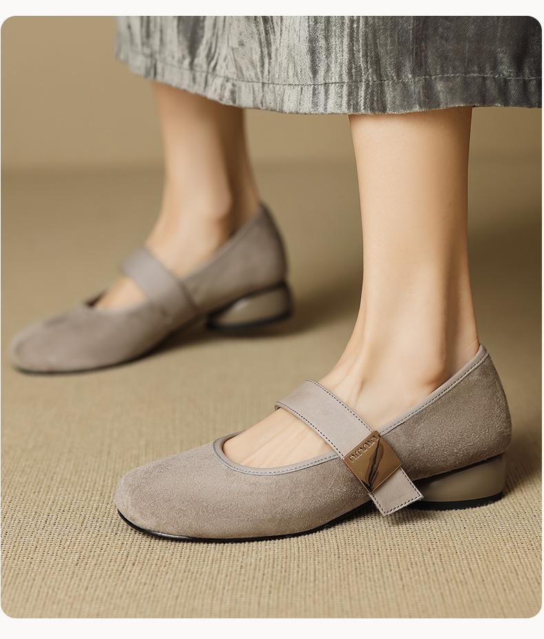 2025 봄 신상 반투명 양가죽 메탈 버클 라운드 토 두꺼운 굽 펌프스 여성용 레트로 원 스트랩 메리 제인 슈즈스토어 가기
