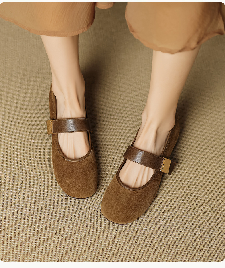 2025 봄 신상 반투명 양가죽 메탈 버클 라운드 토 두꺼운 굽 펌프스 여성용 레트로 원 스트랩 메리 제인 슈즈