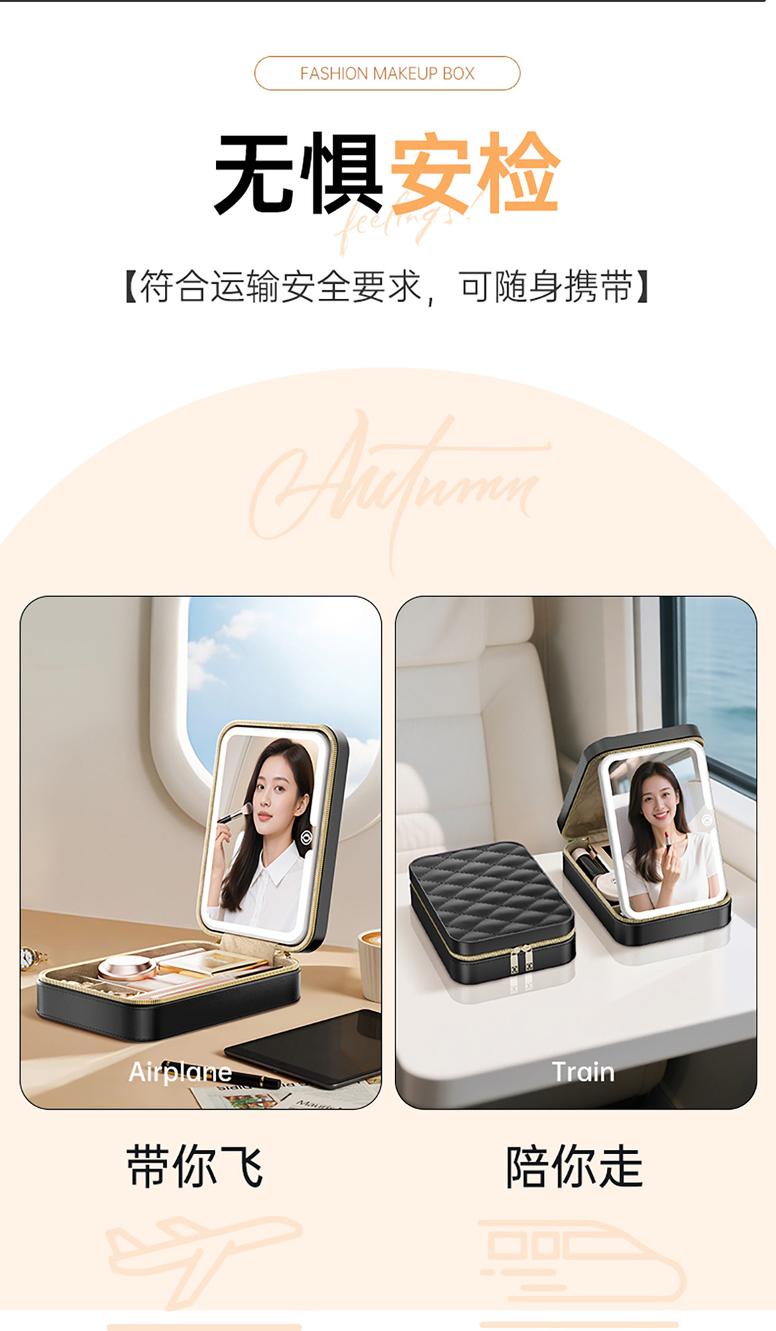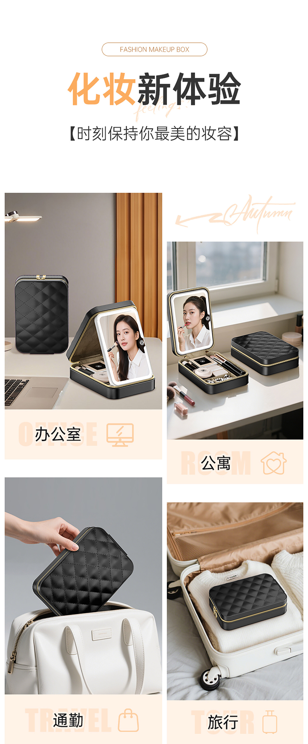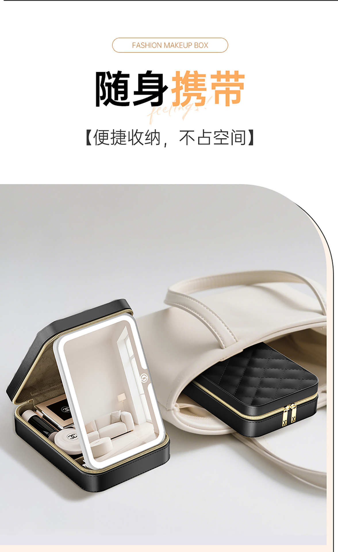 기휘 화장품 가방(거울 포함) 토트백 내부 수납함 2025년 신형 여성용 고급 통근용 휴대용 메이크업 보관함 소형스토어 가기