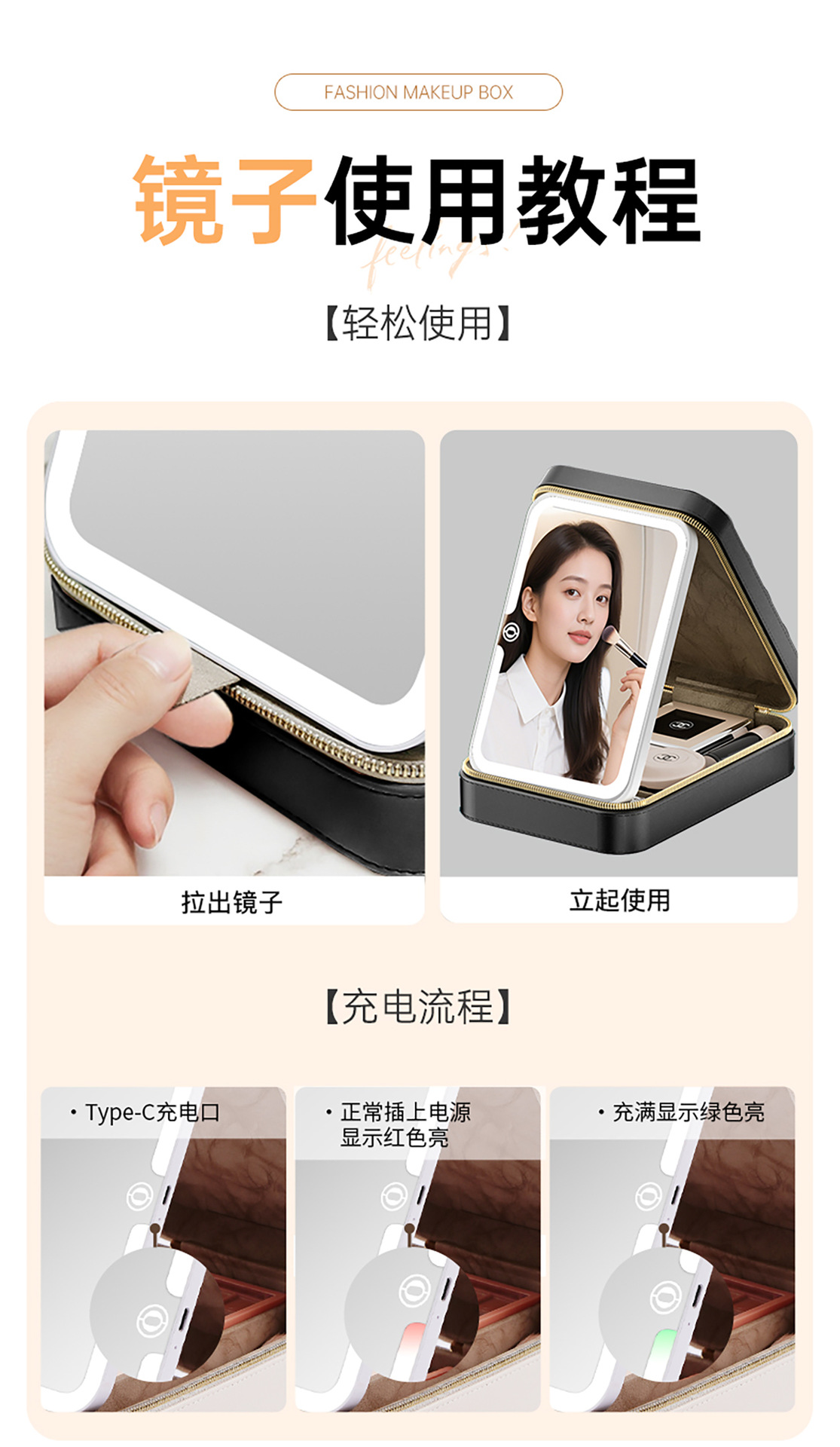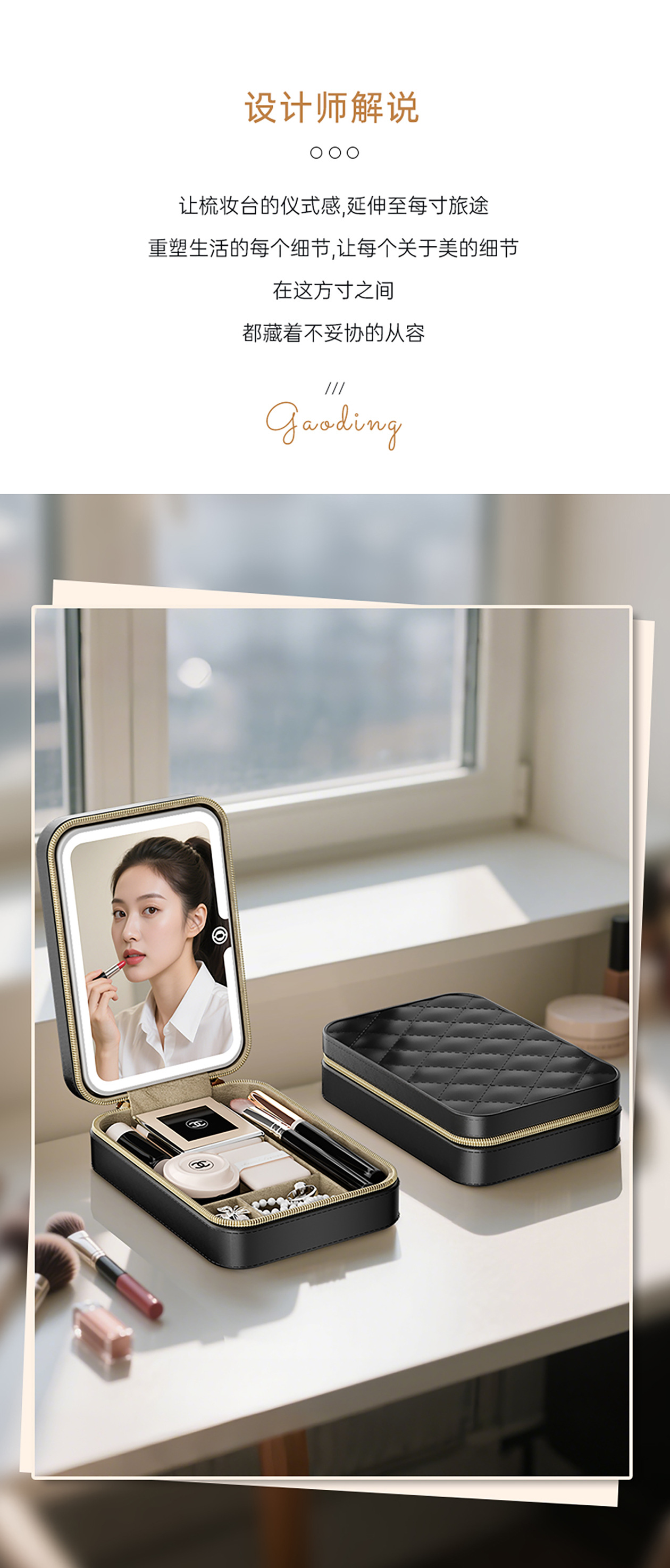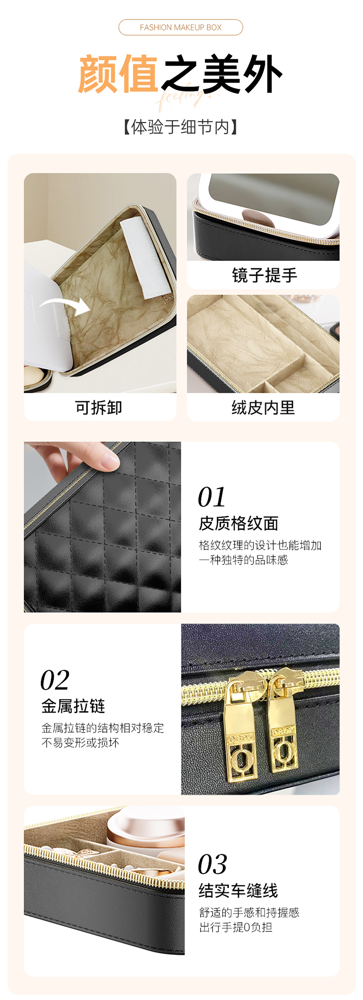 기휘 화장품 가방(거울 포함) 토트백 내부 수납함 2025년 신형 여성용 고급 통근용 휴대용 메이크업 보관함 소형스토어 가기