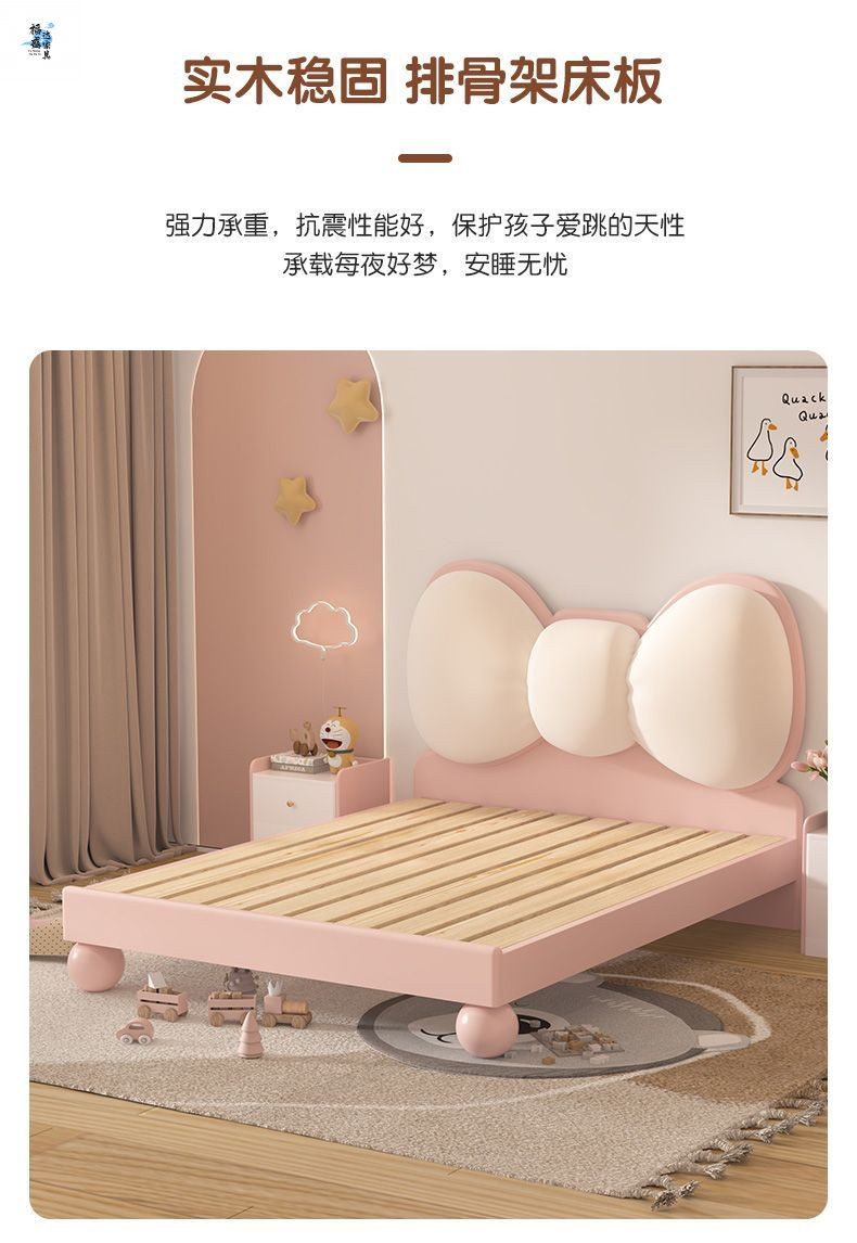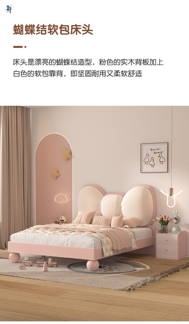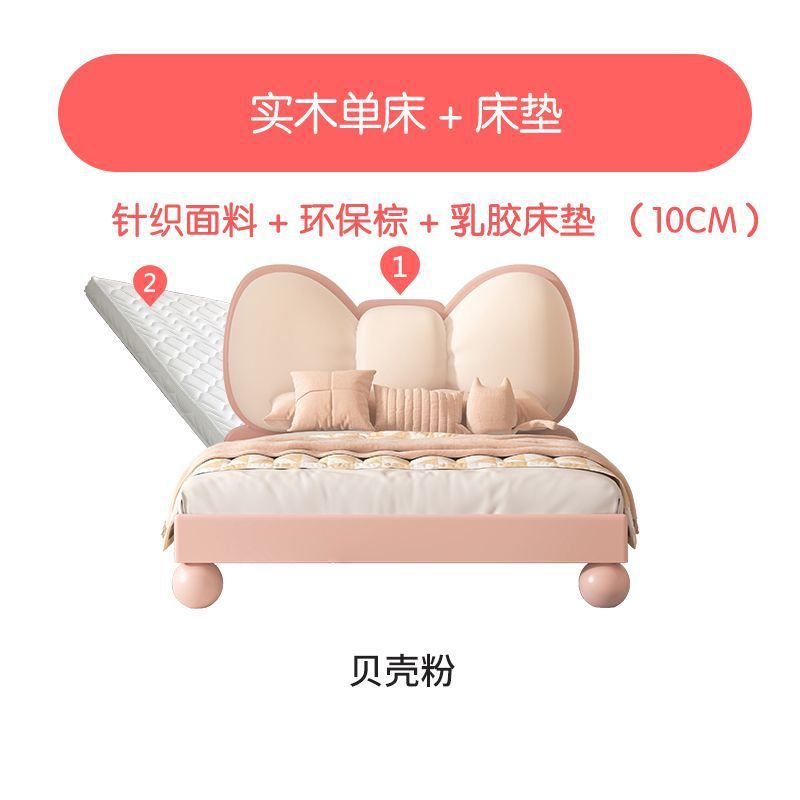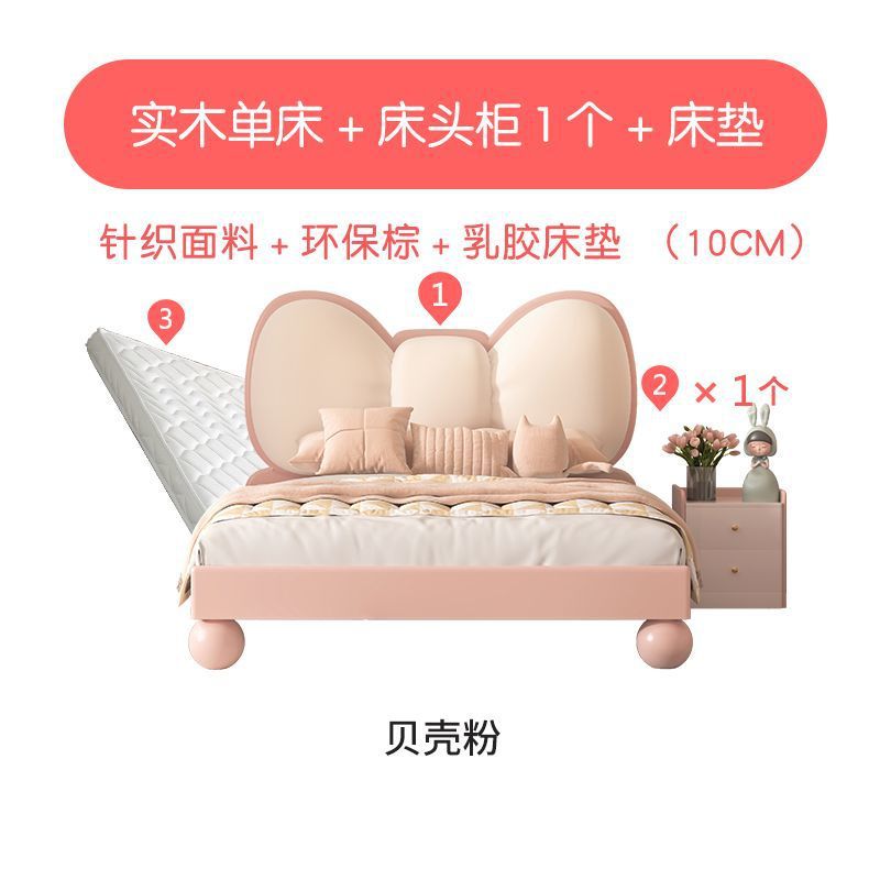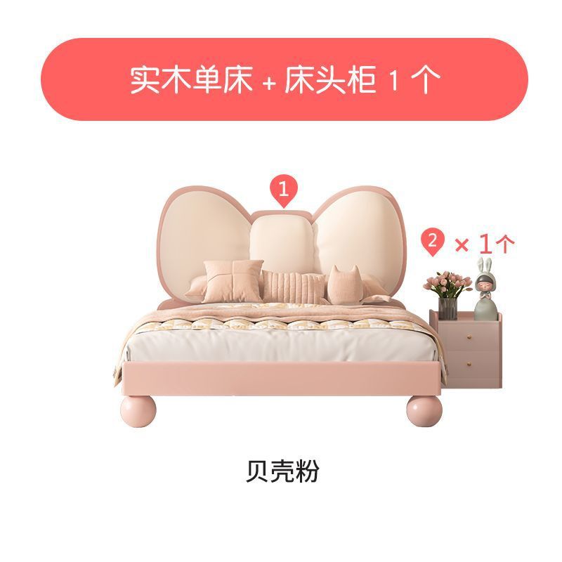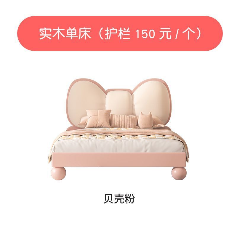 단단한 나무 어린이 침대 현대 미니멀리스트 소녀 공주 침대 핑크 어린이 침실 가구 부드러운 가방 Bowknot 어린이 침대