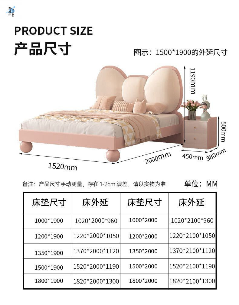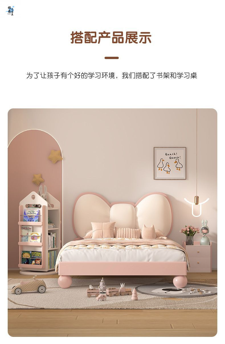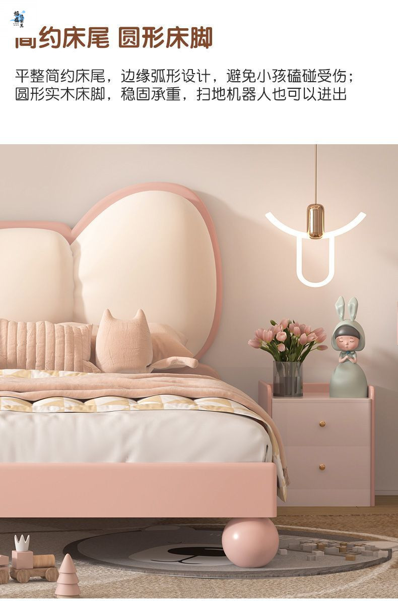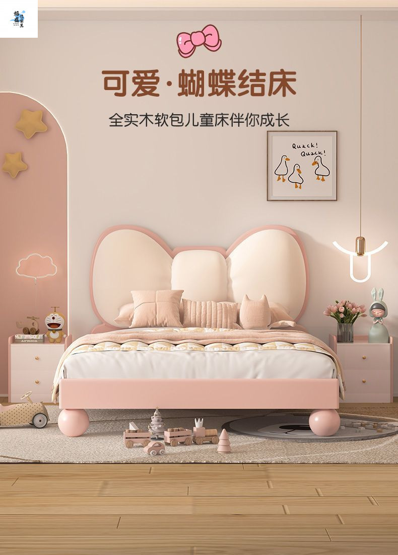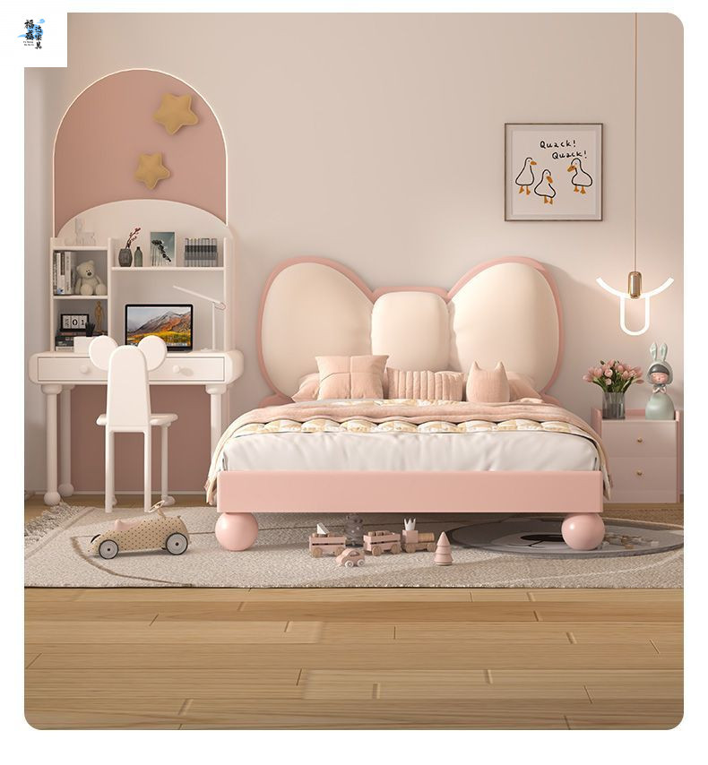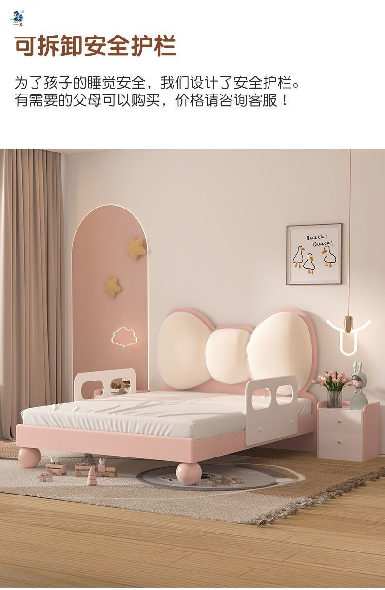 단단한 나무 어린이 침대 현대 미니멀리스트 소녀 공주 침대 핑크 어린이 침실 가구 부드러운 가방 Bowknot 어린이 침대