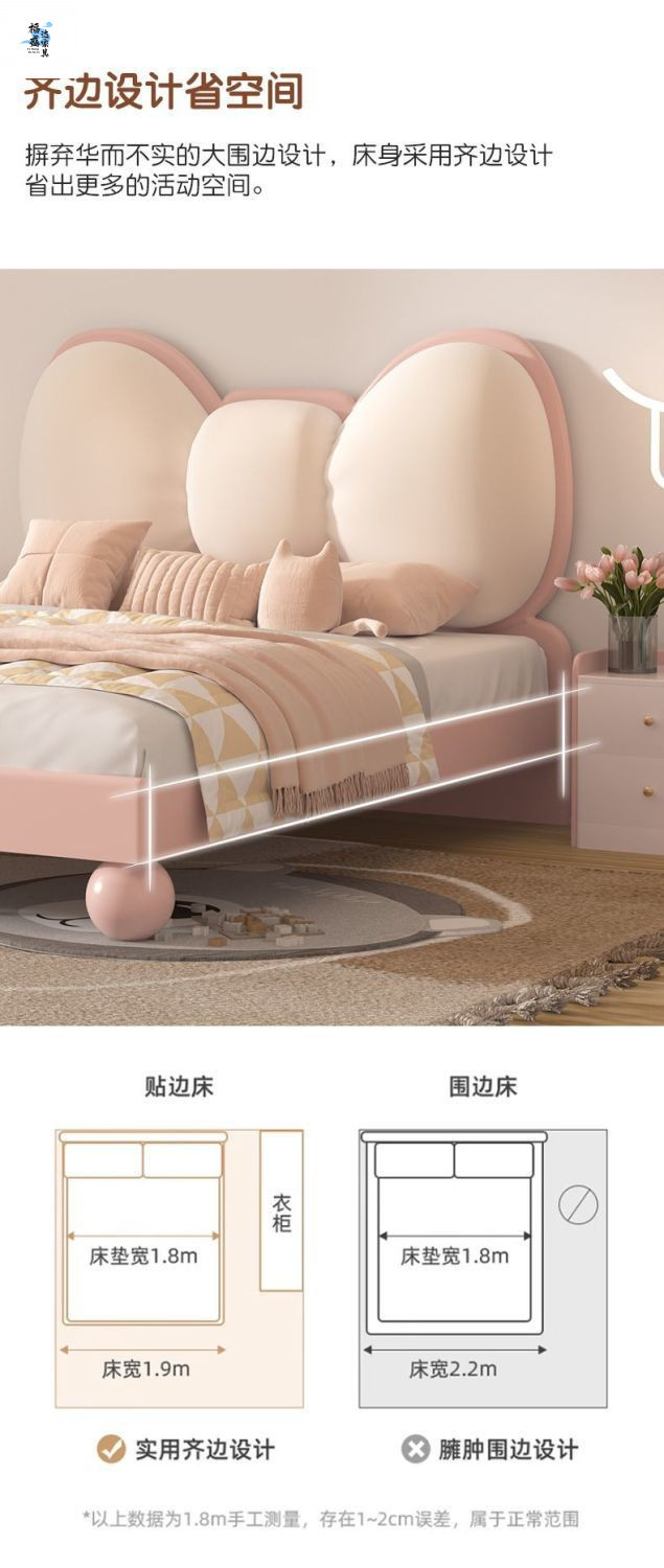 단단한 나무 어린이 침대 현대 미니멀리스트 소녀 공주 침대 핑크 어린이 침실 가구 부드러운 가방 Bowknot 어린이 침대스토어 가기