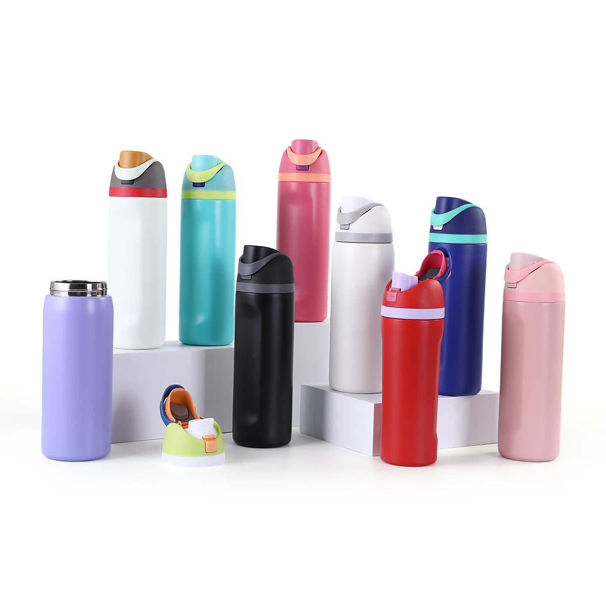 아마존 304 스테인레스 스틸 튀는 이중 마시는 뚜껑 과일 컵 휴대용 스포츠 직접 마시는 패션 단열 및 보냉 사용자 정의