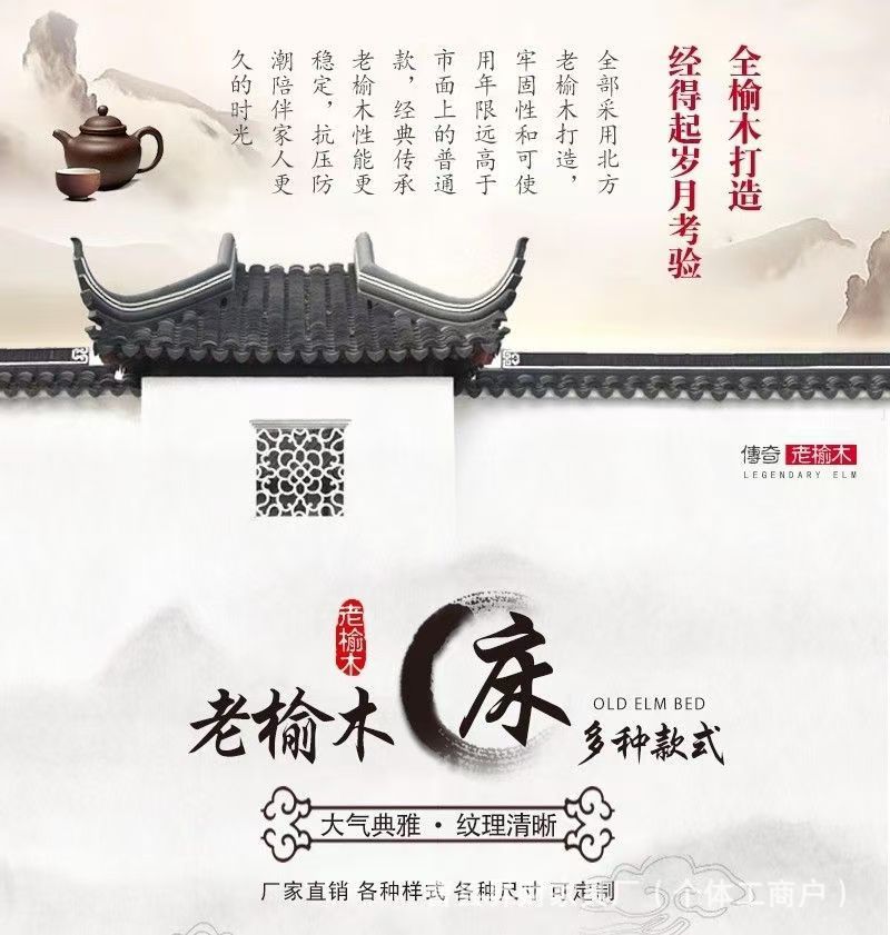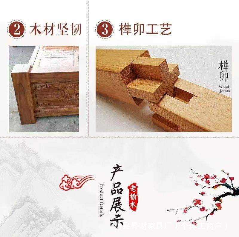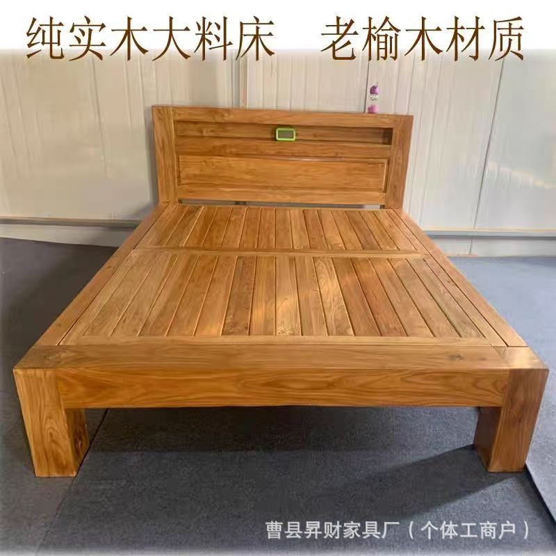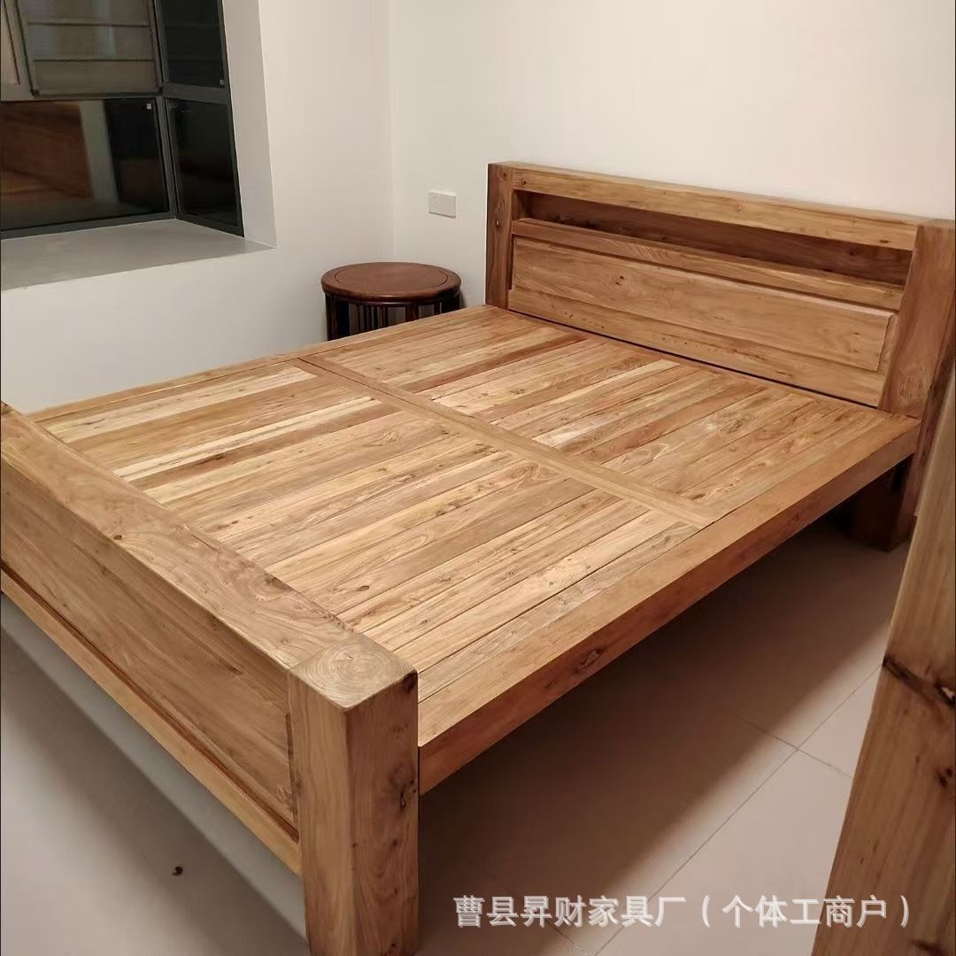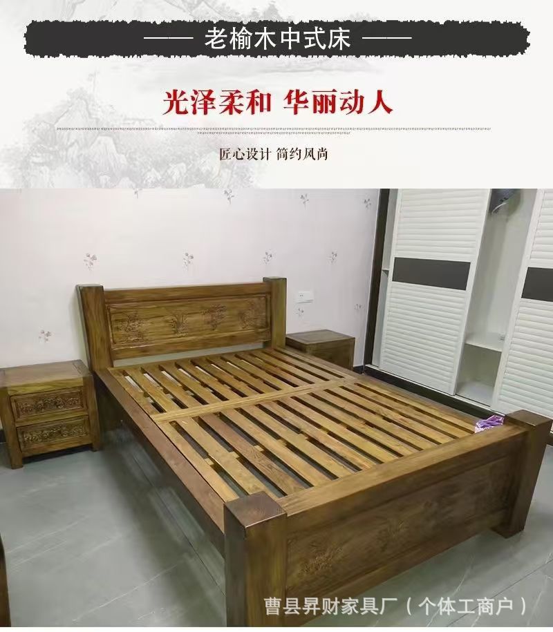 노던 올드 느릅나무 침대 원목 수납 침대 홈 모필 조각 침대 B&B 심플 로그 대형 침대 보증금스토어 가기