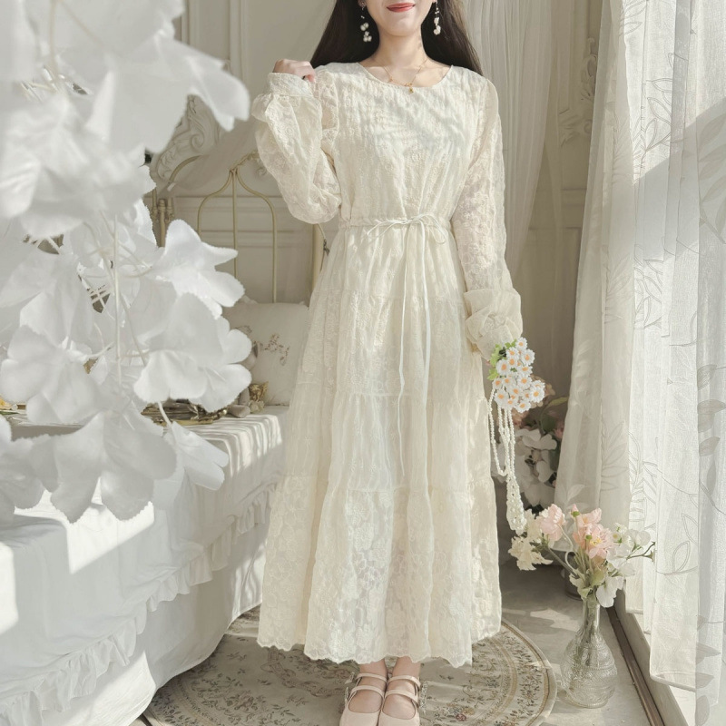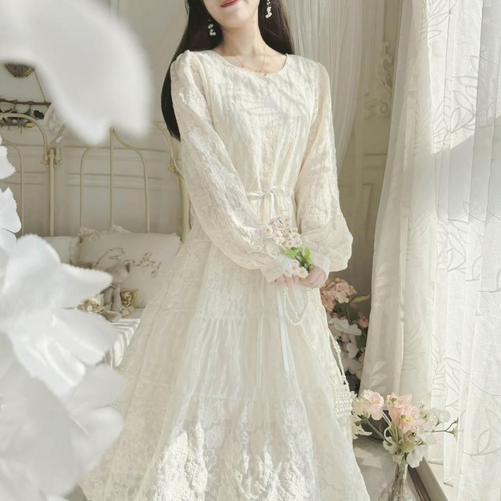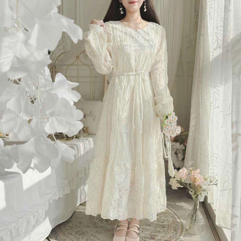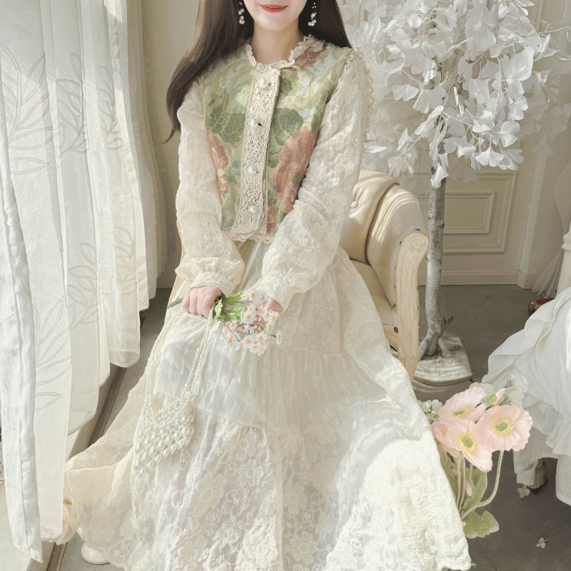 Runaway Princess Sweet Super Fairy 레이스 자수 흰색 느슨한 소녀 드레스 꽃 조끼 투피스 슈트스토어 가기