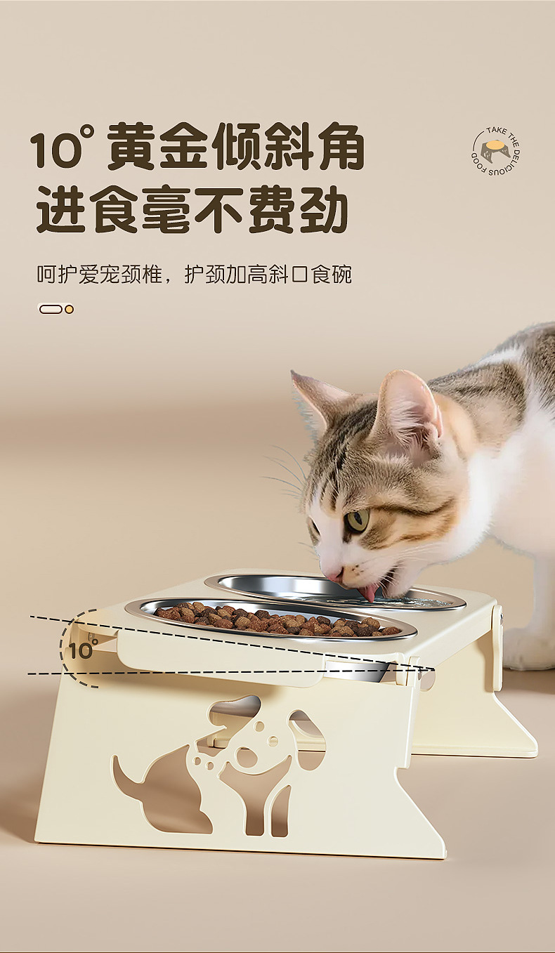 경추를 보호하는 크로스보더 애완견 사료 그릇 더블 그릇 홀더 고양이 밥 그릇 접이식 소형견 식기 특수 그릇스토어 가기