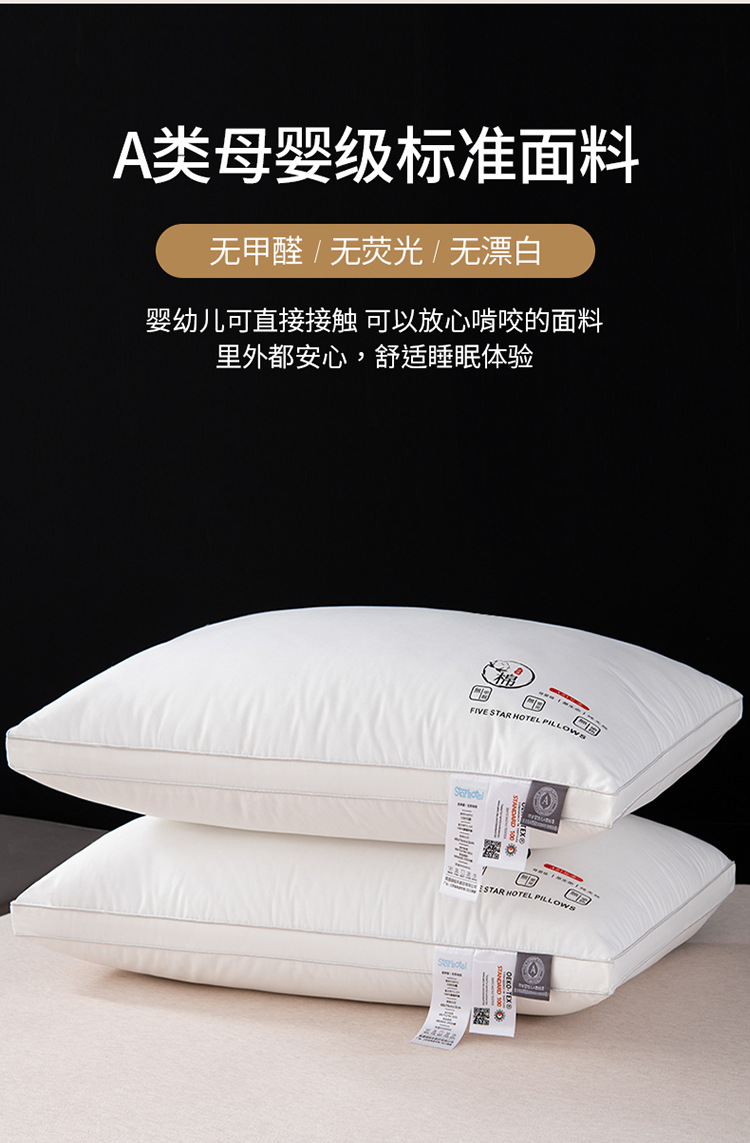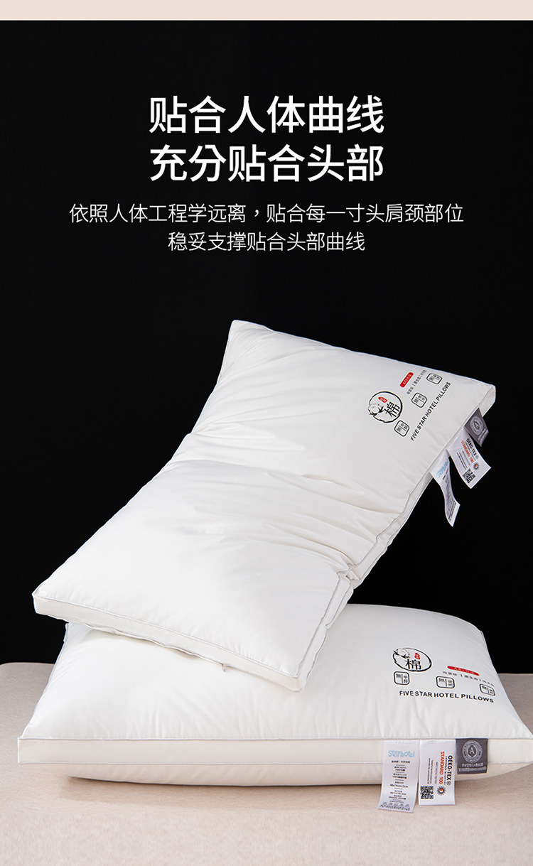 클래스 A 면 호텔 베개 코어 깃털 벨벳 순수 면 베개 성인 경추 보호 성인 세탁 가능한 가정용 베개 코어