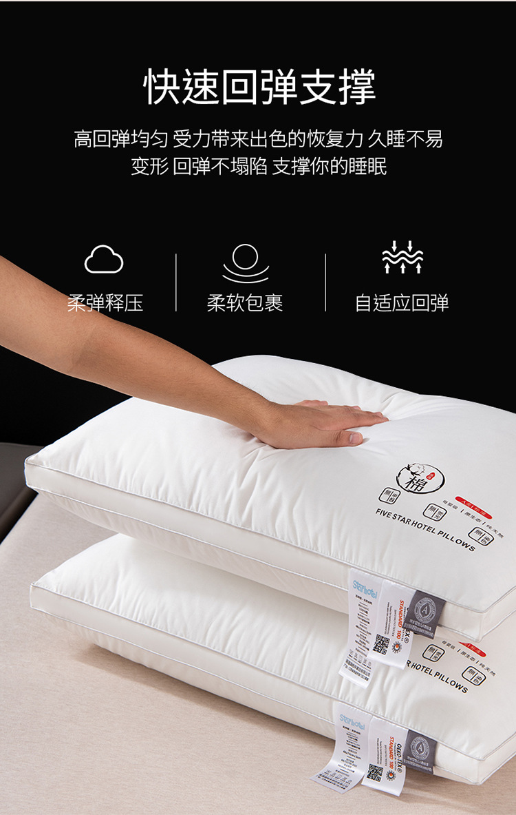 클래스 A 면 호텔 베개 코어 깃털 벨벳 순수 면 베개 성인 경추 보호 성인 세탁 가능한 가정용 베개 코어스토어 가기