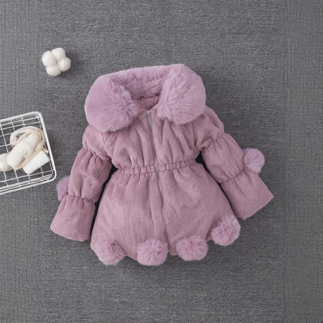 대외 무역 새로운 스타일의 소녀의 두꺼운 재킷 어린이 모조 모피 솔리드 컬러 코트 소녀 의류 아기 소녀의 큰 모피 칼라 코트스토어 가기