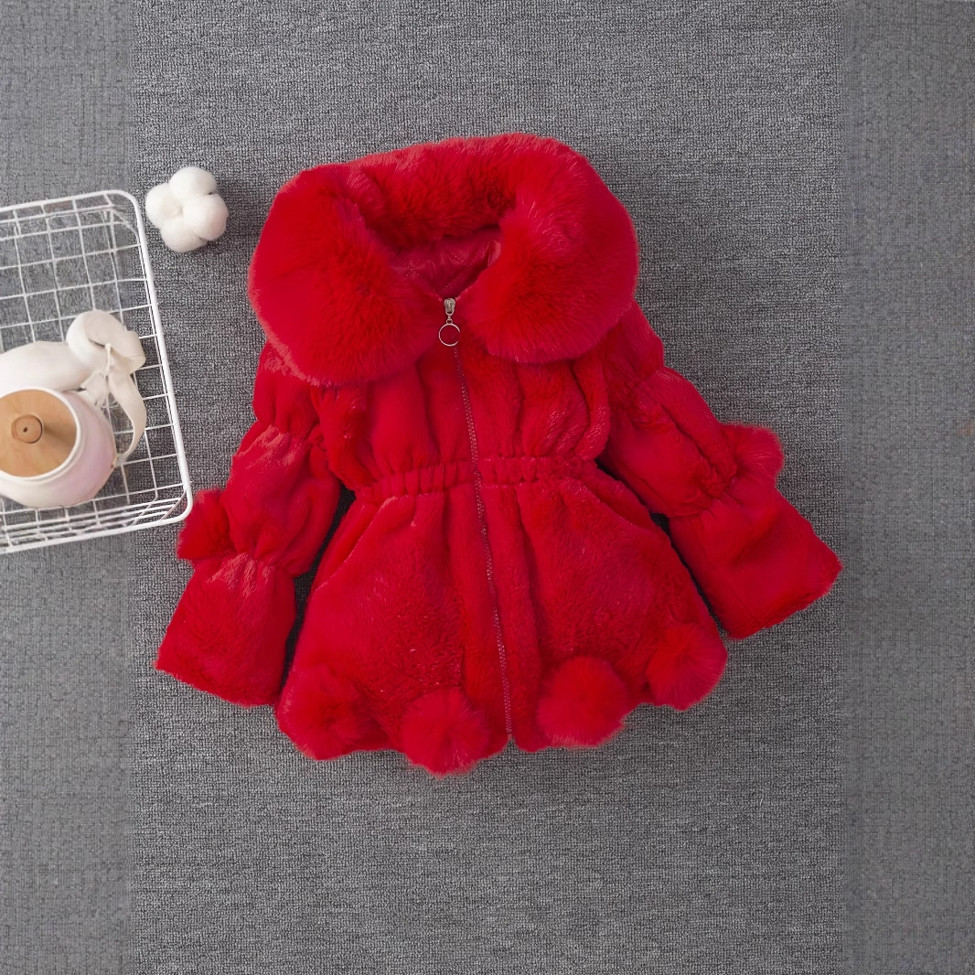 대외 무역 새로운 스타일의 소녀의 두꺼운 재킷 어린이 모조 모피 솔리드 컬러 코트 소녀 의류 아기 소녀의 큰 모피 칼라 코트