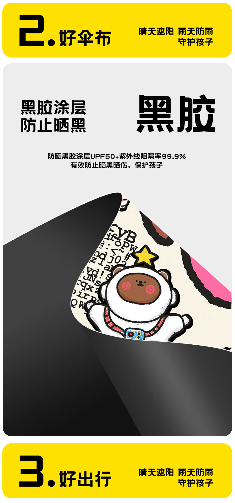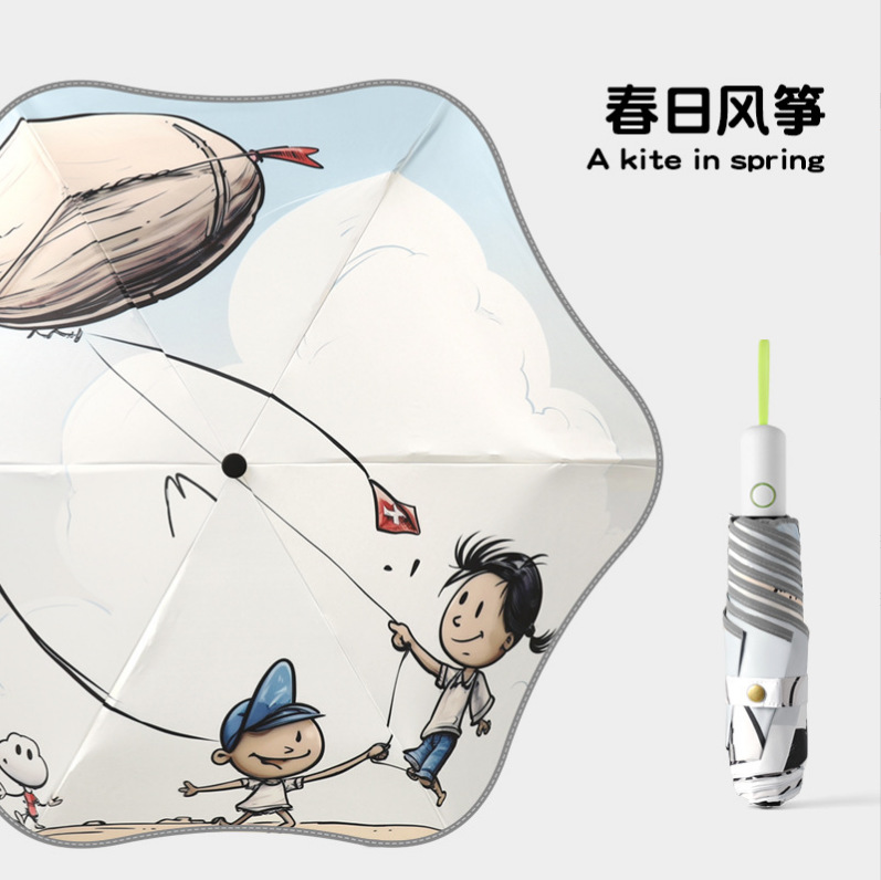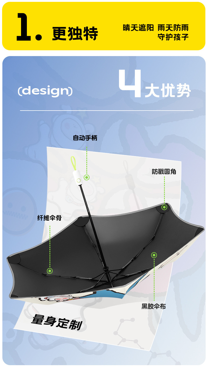완전 자동 둥근 모서리 우산, 초등학생 및 어린이를 위한 검정색 플라스틱 반동 방지 접이식 비 또는 빛 우산스토어 가기