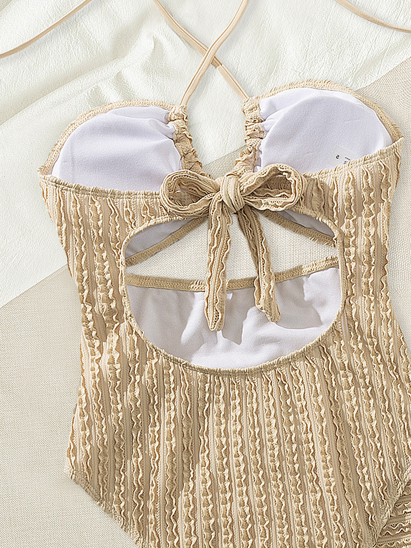 2025 새로운 유럽과 미국의 수영복 원피스 투피스 세트 중공 튜브 탑 홀터넥 솔리드 컬러 크로스보더 원피스 대외 무역 수영복스토어 가기