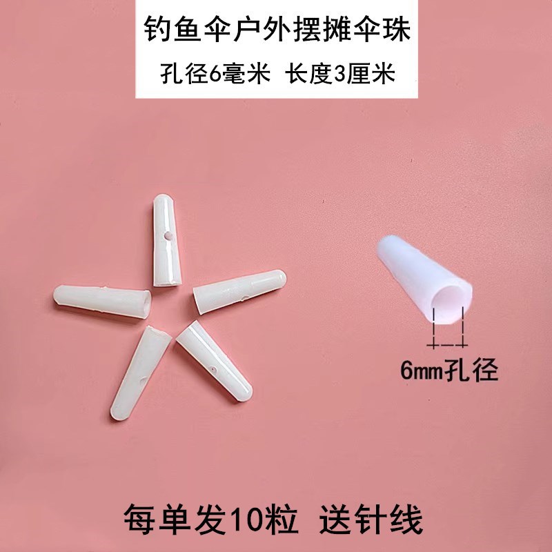 • 6mm 구멍 직경 흰색 테이퍼형 스톨 우산 구슬 10개 무료 바늘과 실