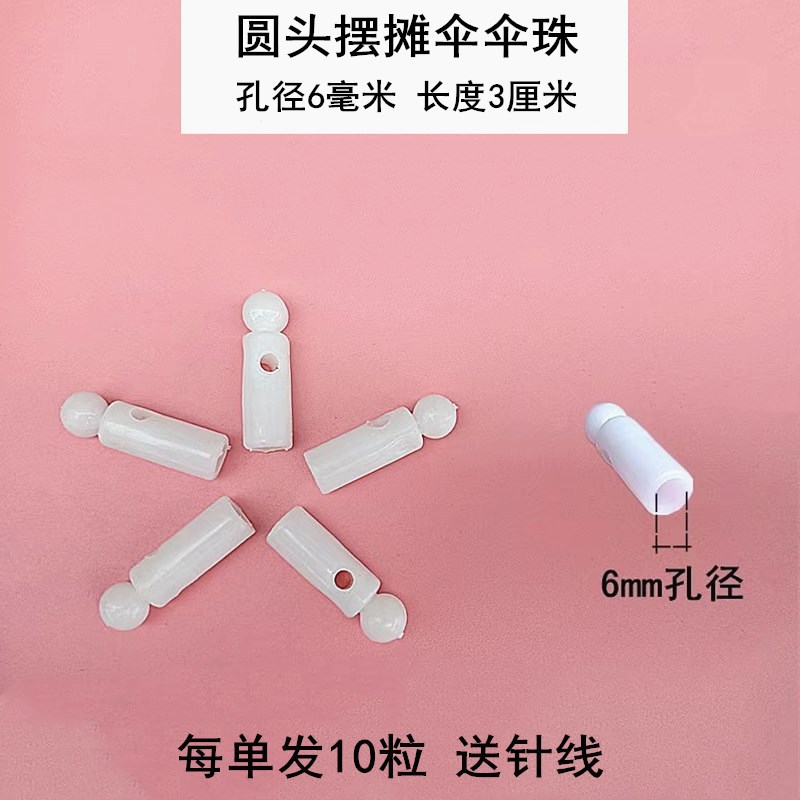 • 6mm 구멍 직경 흰색 둥근 머리 스톨 우산 구슬 10개 무료 바늘과 실