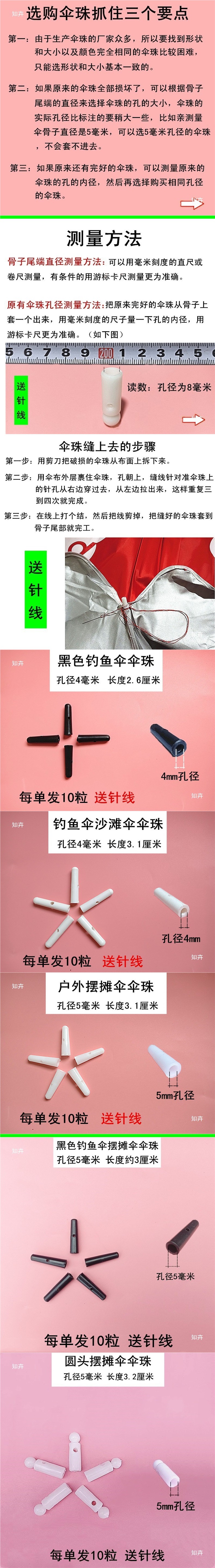 • 5mm 구멍 2개, 파라솔 이중 구멍 우산 구슬, 10개, 뼈 2개 수용, 바늘과 실 포함
