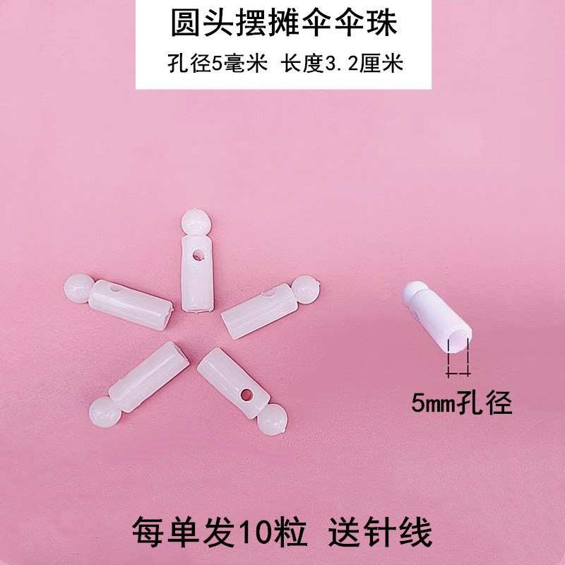 • 5mm 구멍 직경 흰색 둥근 머리 스톨 우산 구슬 10개 무료 바늘과 실