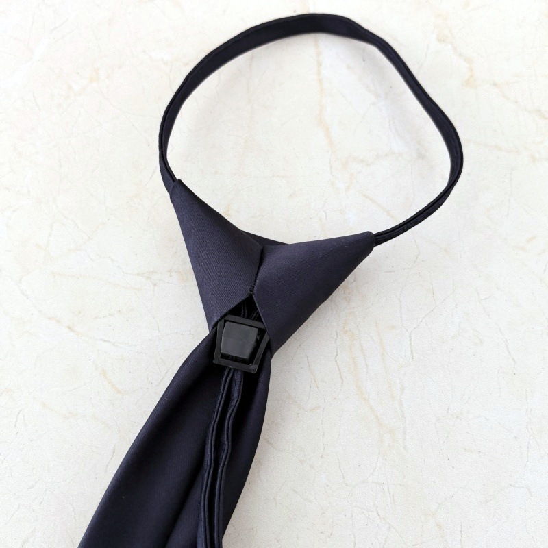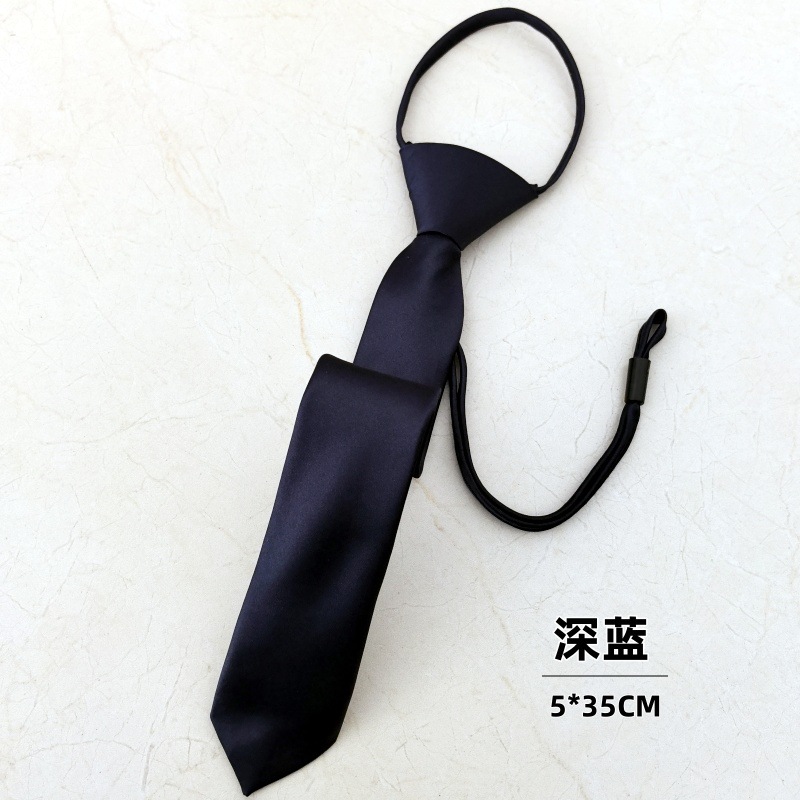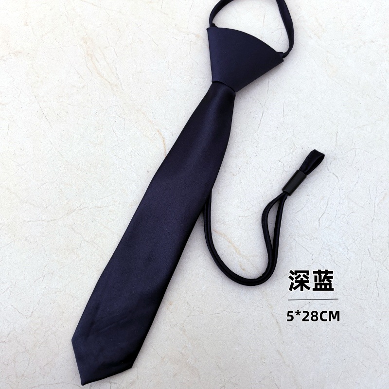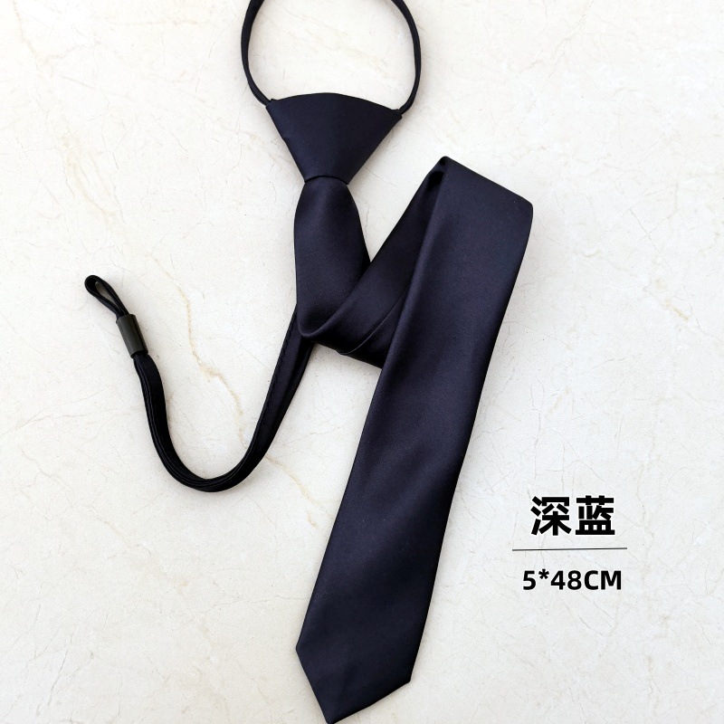 매트하고 쉽게 당기는 넥타이, 진한 파란색, 매듭 없는 학생용 남녀공용 편리한 넥타이, 남성용 및 여성용 단색 게으른 넥타이
