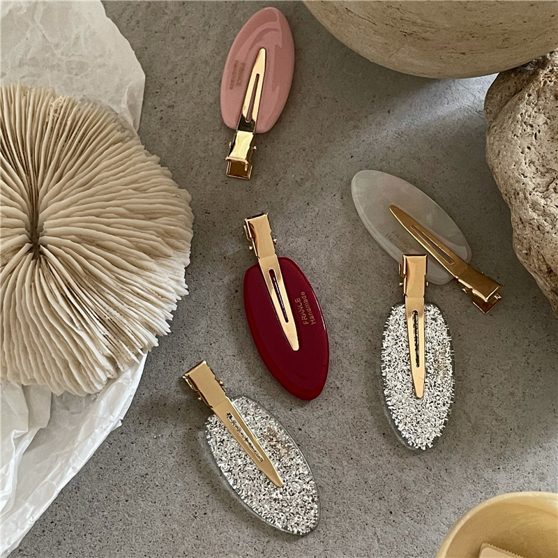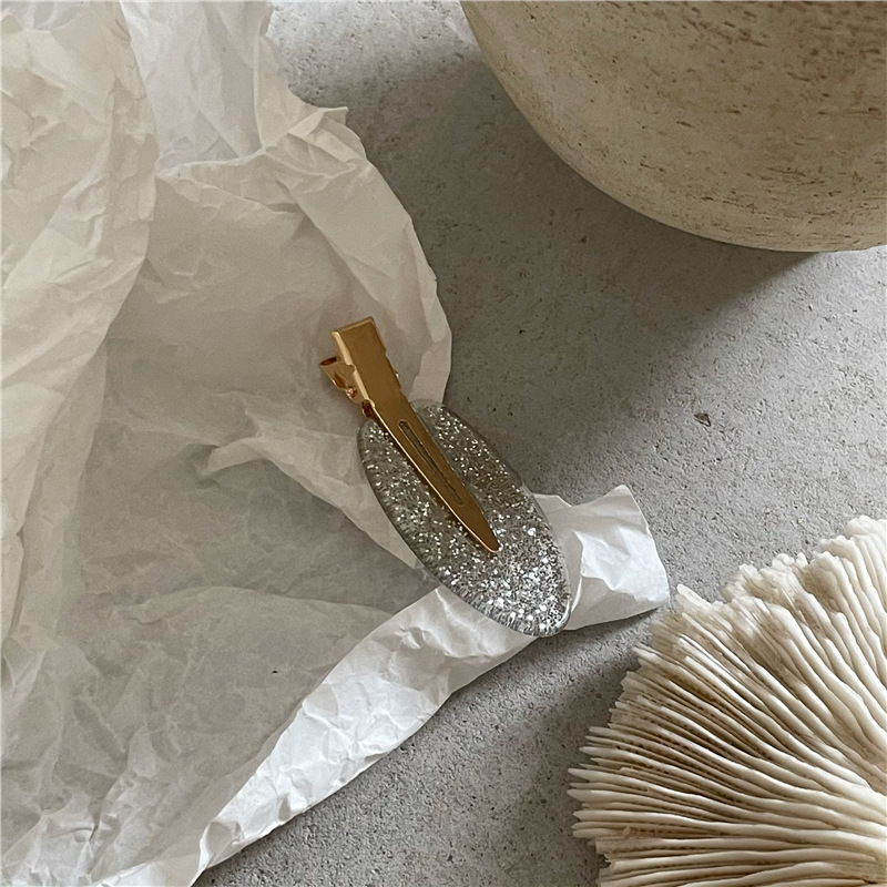 商品卖点:韩国风发饰新款, 质感几何椭圆闪粉