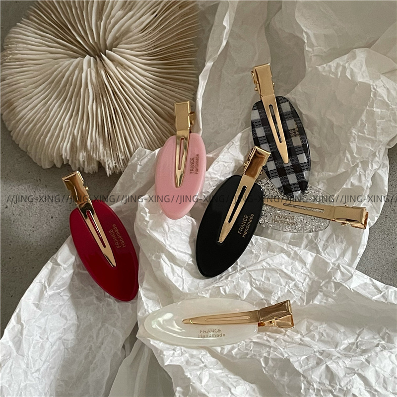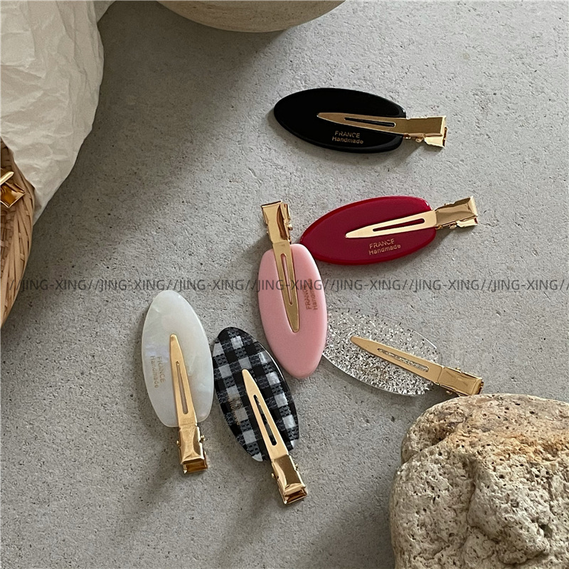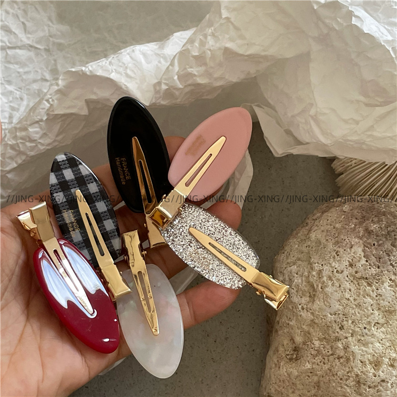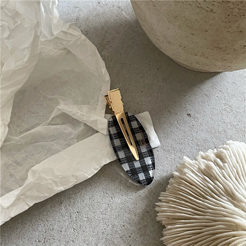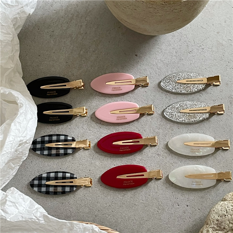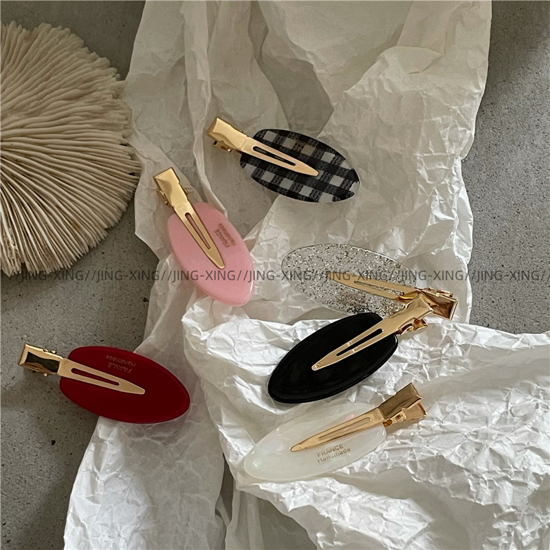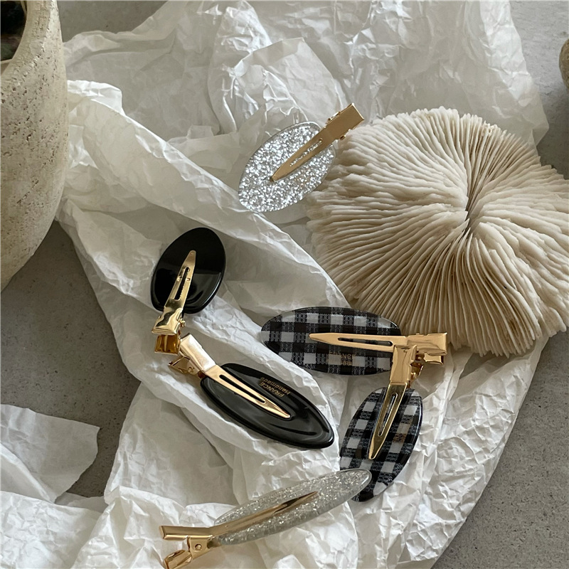 귀여운 타원형 격자 무늬 반짝이 머리핀 사이드 클립 패셔너블한 소녀의 머리 앞머리 클립 덕빌 클립 새로운 스타일