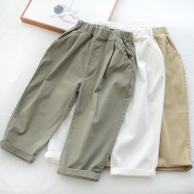 순면 소년 바지 새로운 단색 모기 방지 바지 소년과 소녀를위한 중소형 아동용 스트레이트 통기성 다용도 캐주얼 바지