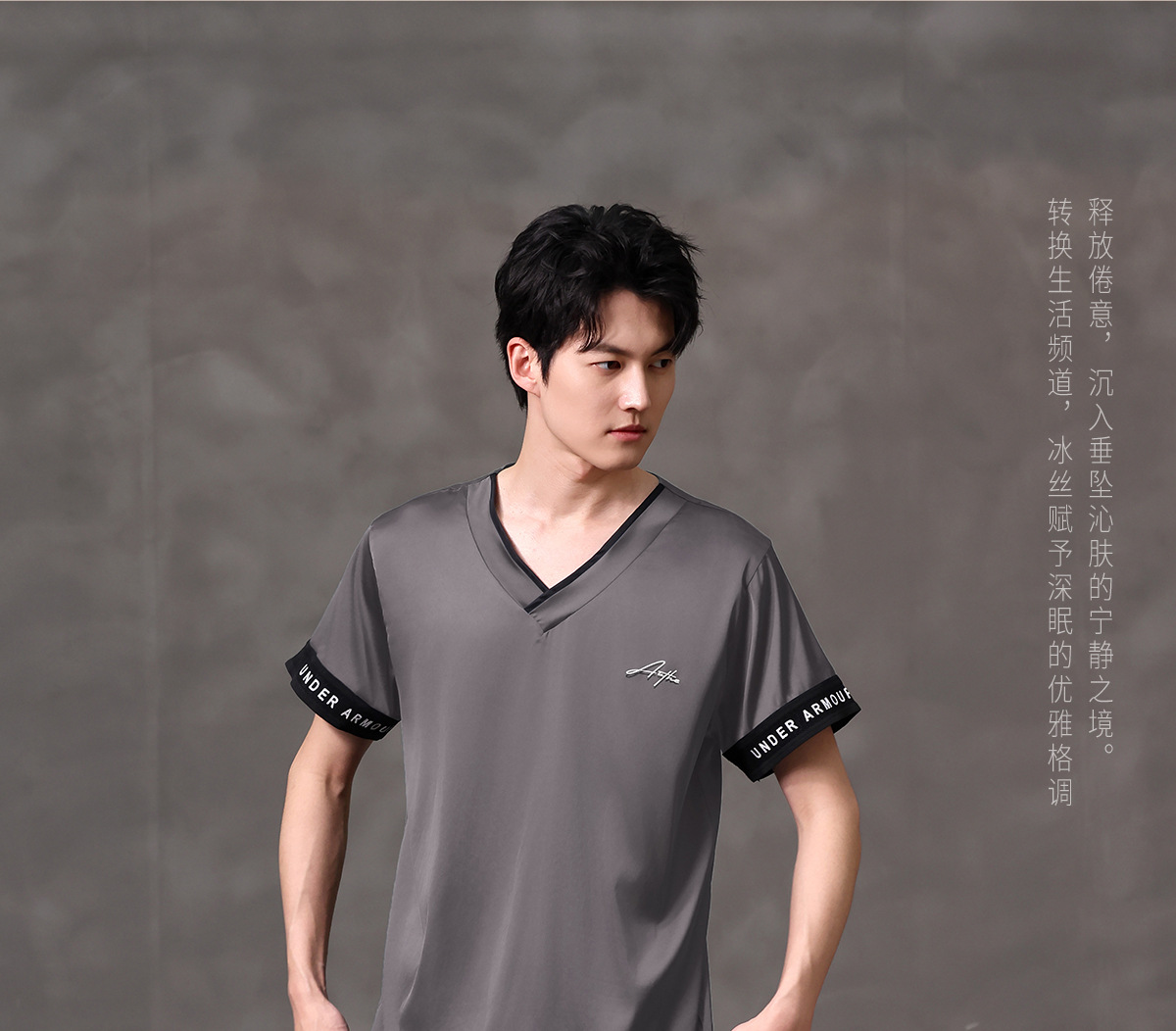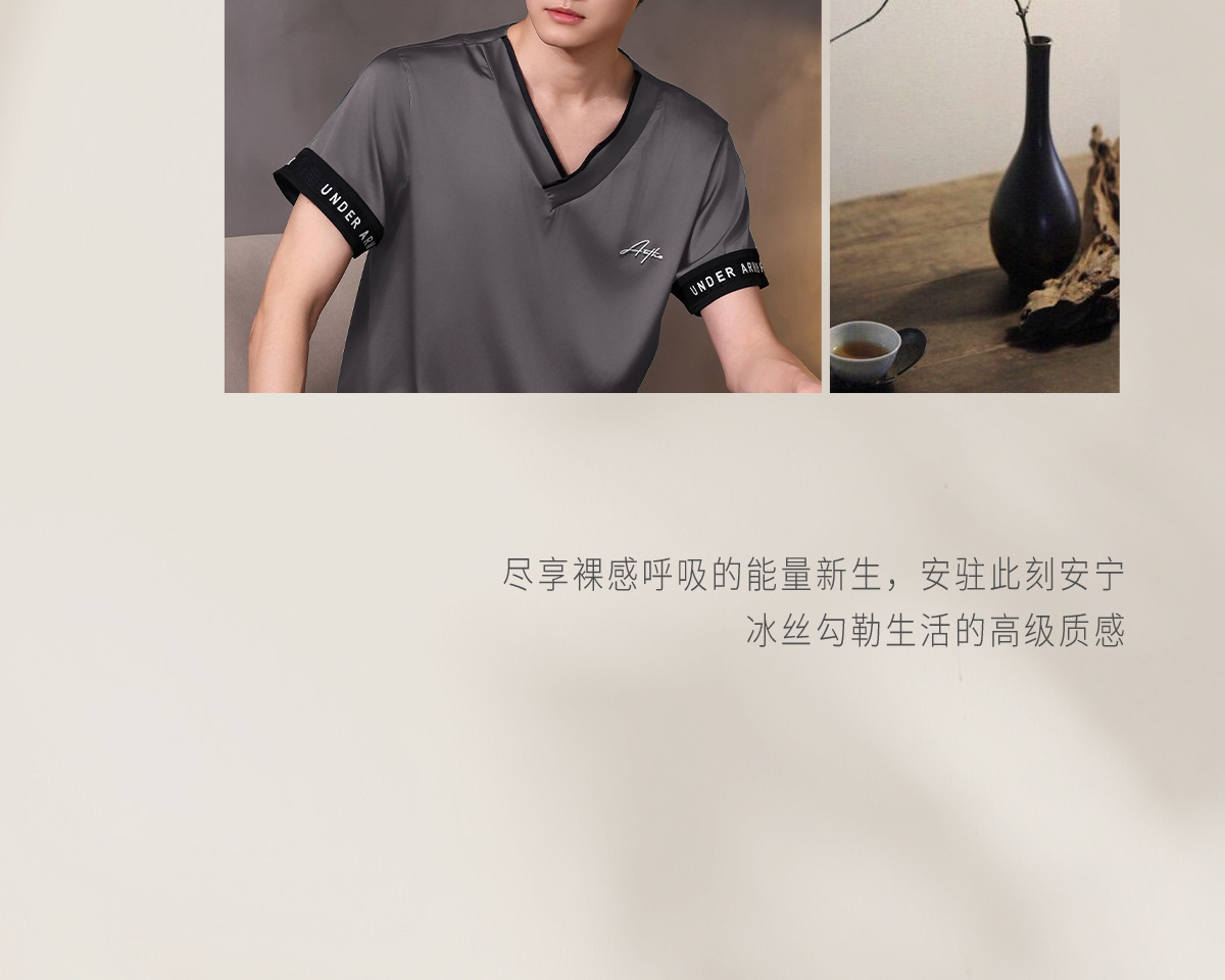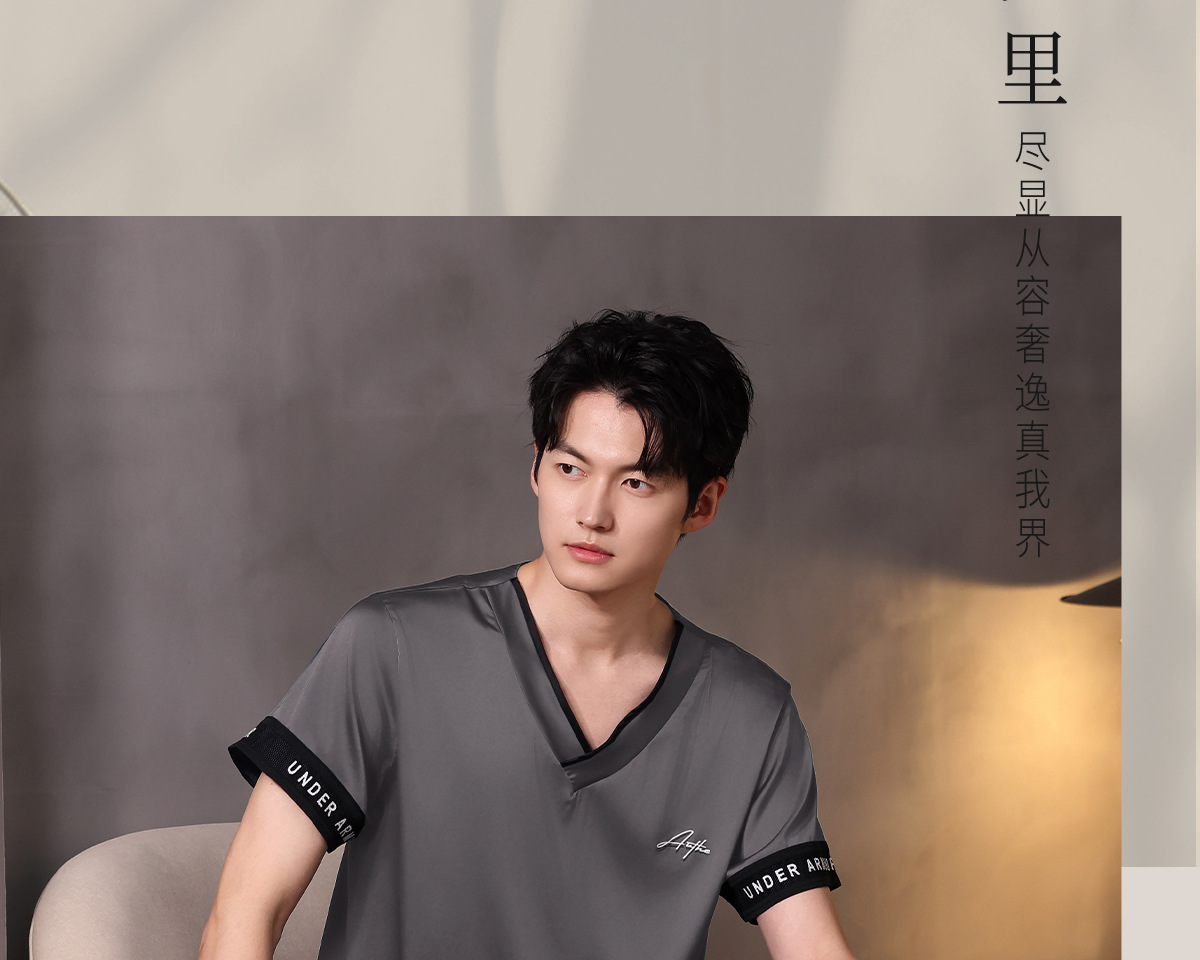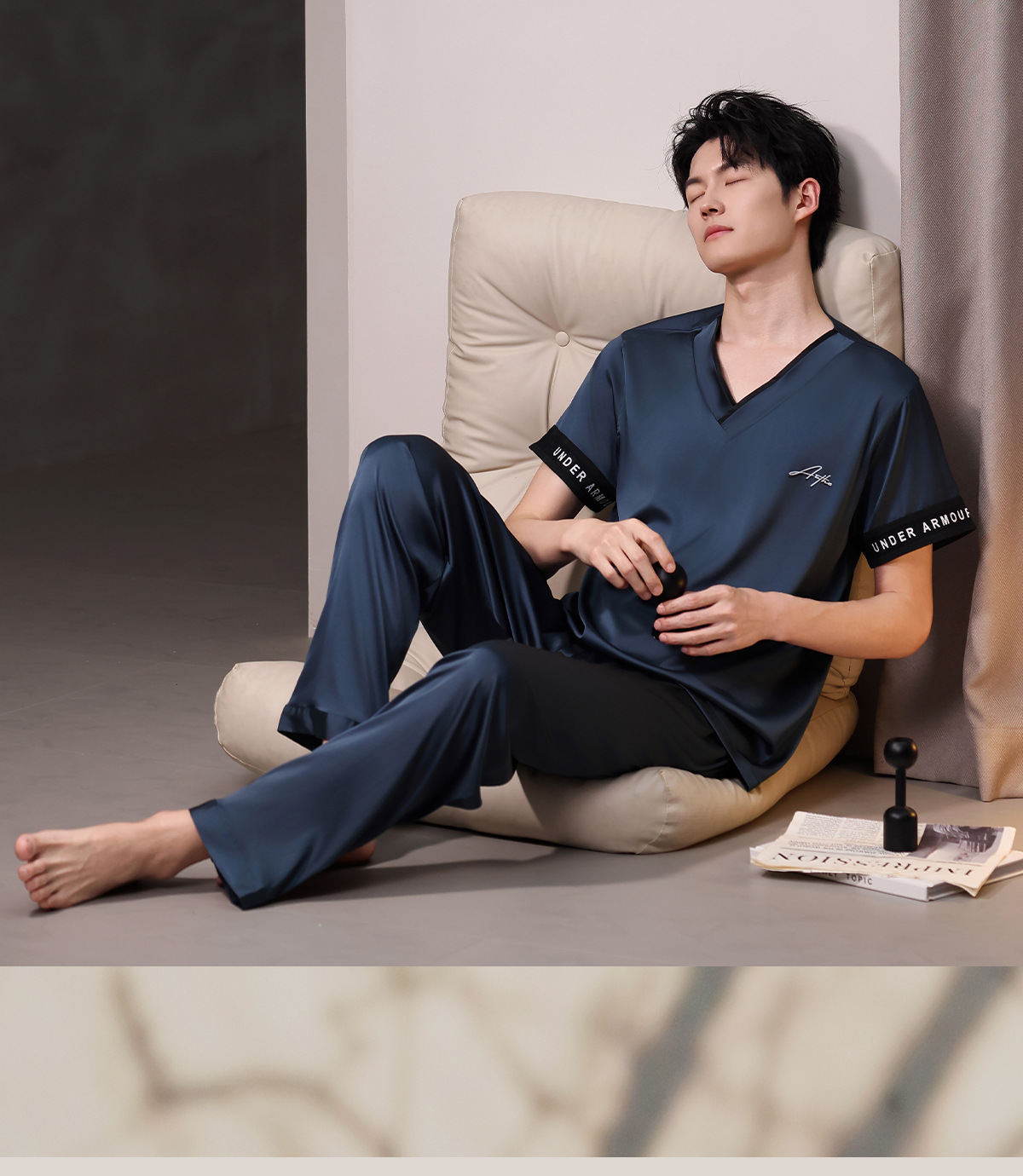[얼음과 눈의 실크] 남성용 신작 잠옷 여름 반팔 모조 실크 하이 엔드 가을 홈웨어 투피스 세트스토어 가기