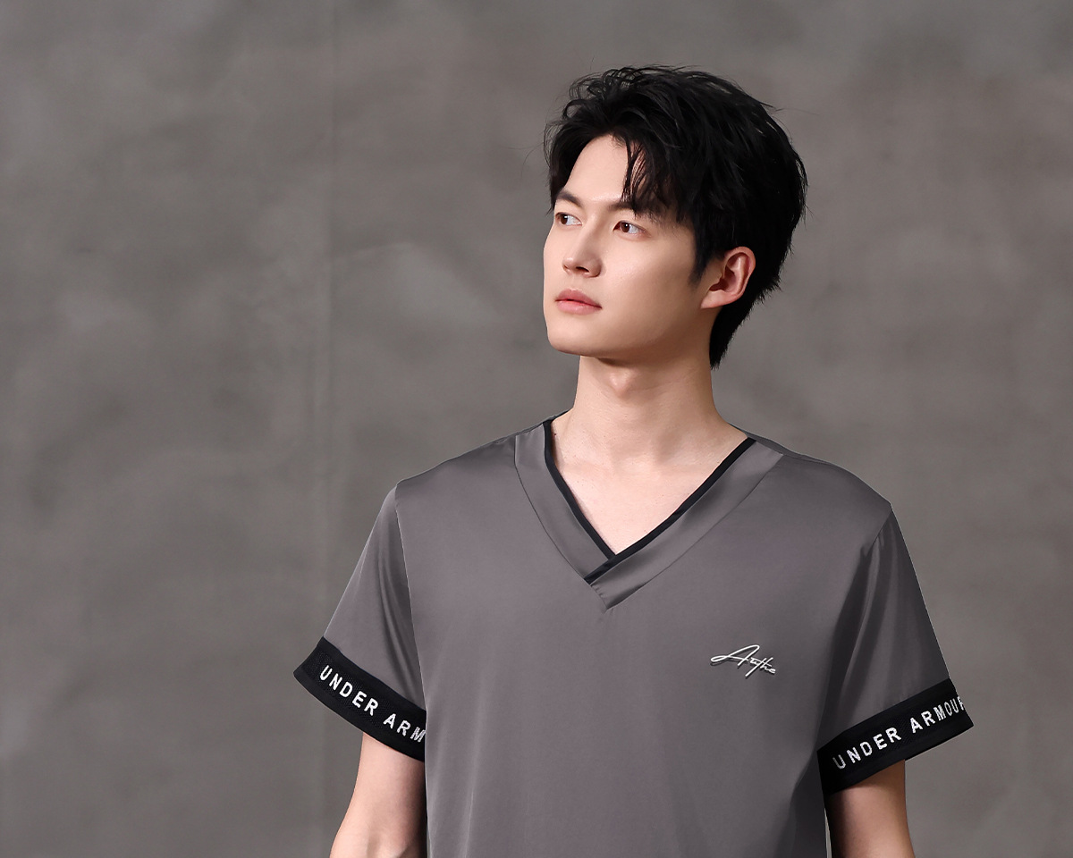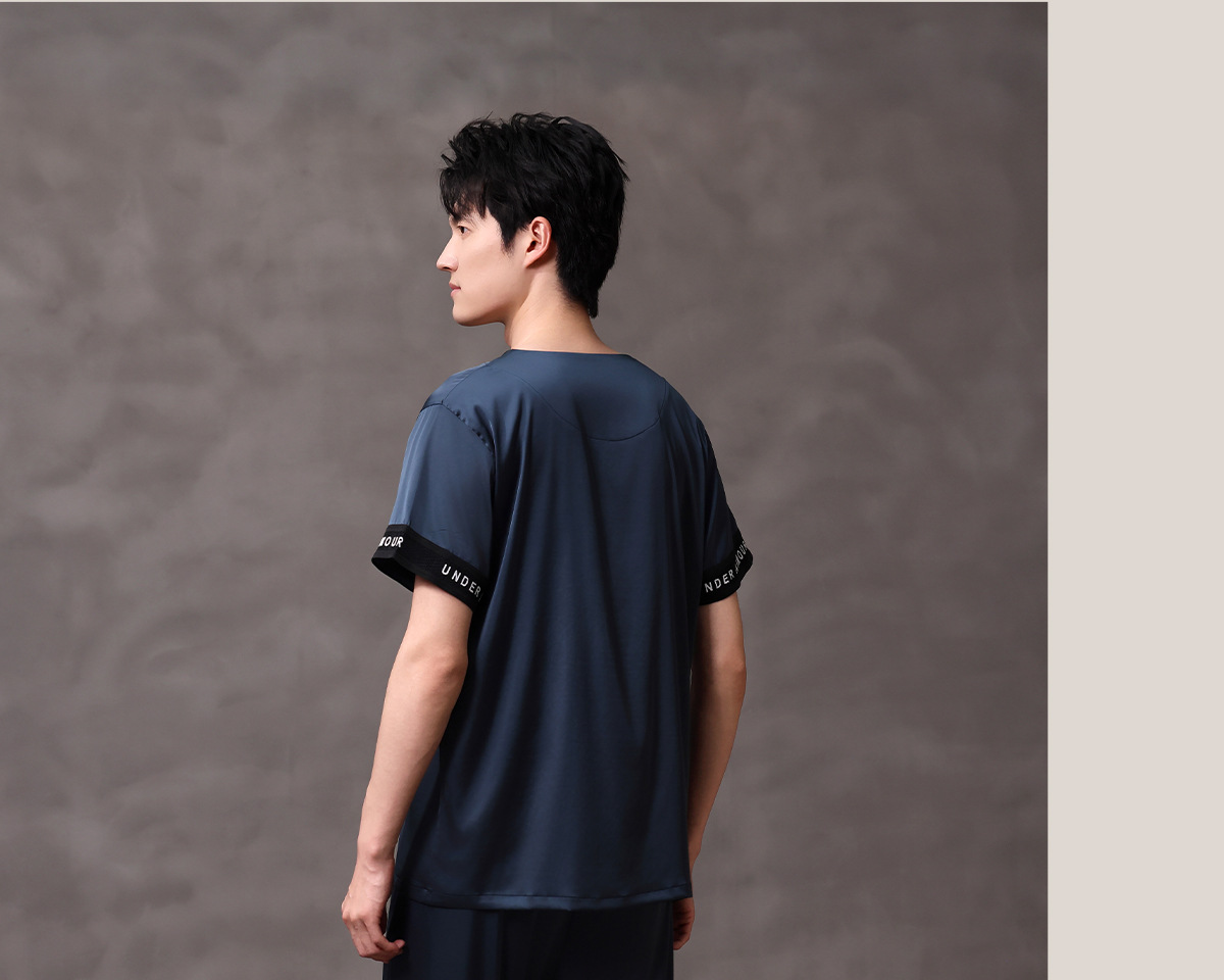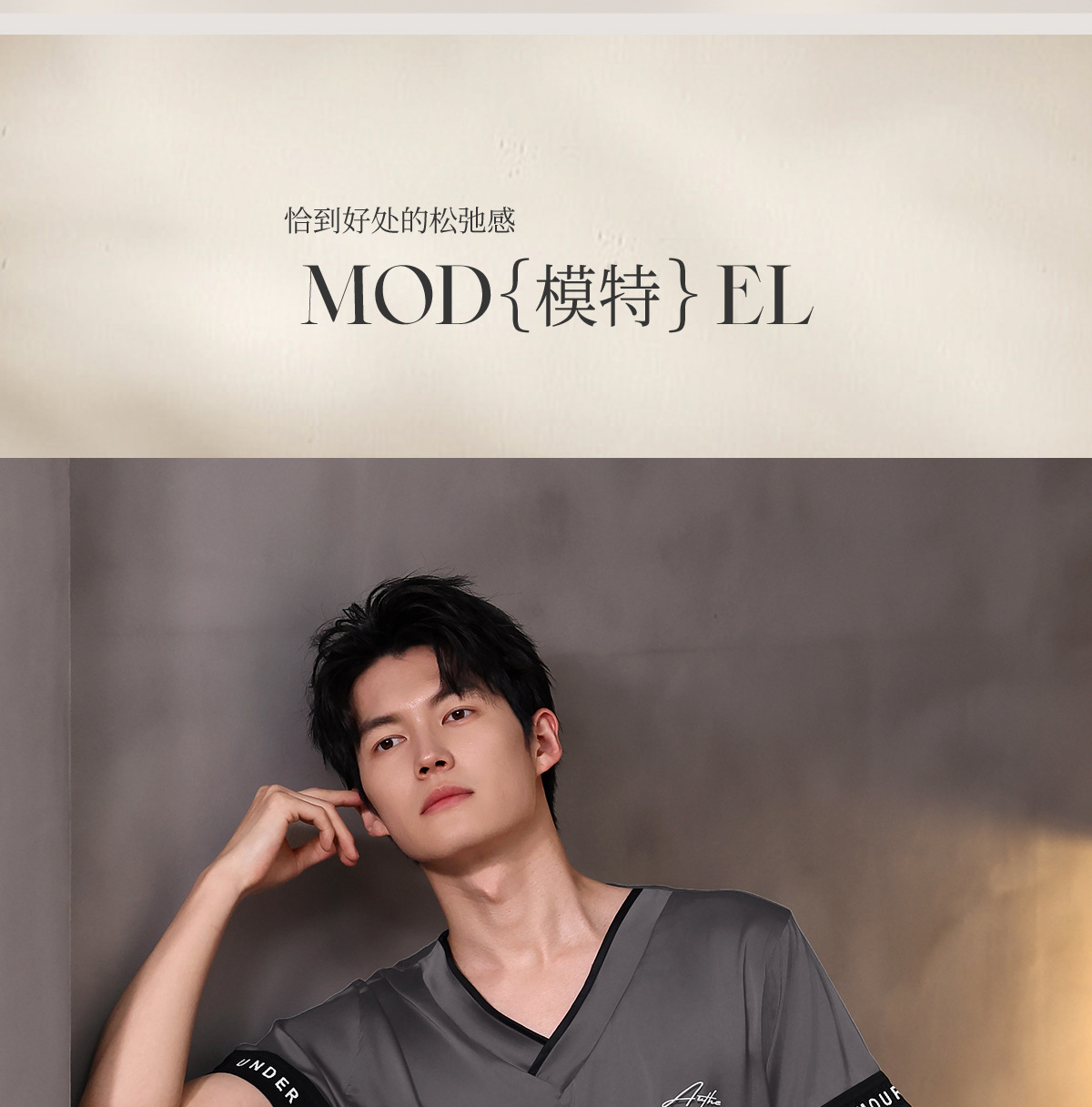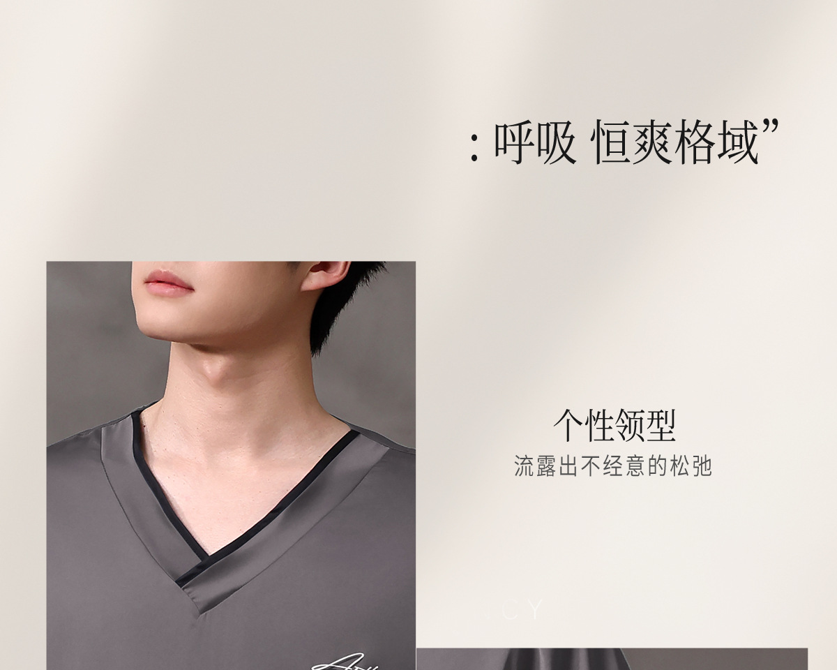[얼음과 눈의 실크] 남성용 신작 잠옷 여름 반팔 모조 실크 하이 엔드 가을 홈웨어 투피스 세트스토어 가기