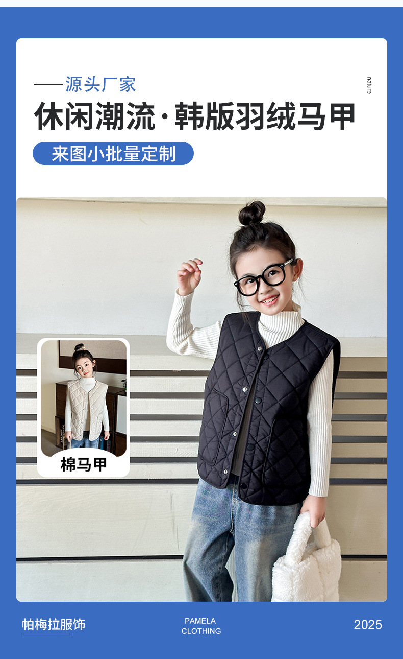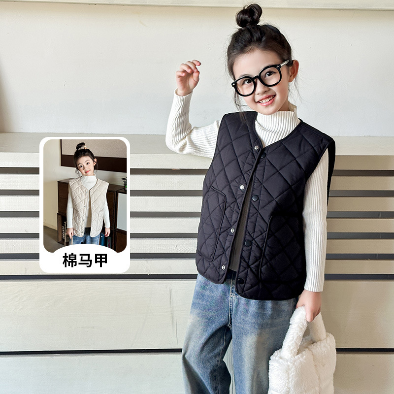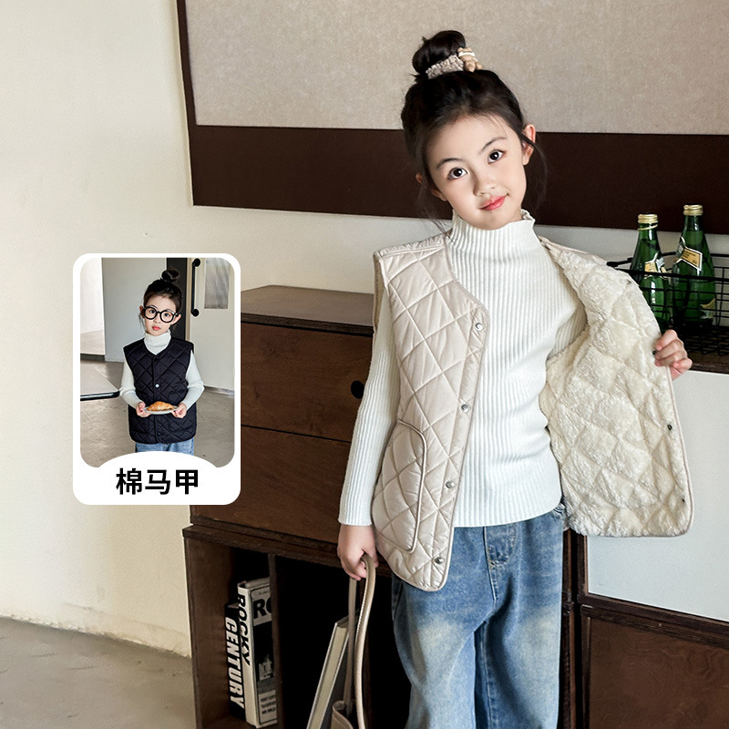 가을 겨울 신상 벨벳 아동 조끼, 따뜻한 누비 여아, 남아, 중대형 아동 면 조끼, 서양식 조끼스토어 가기