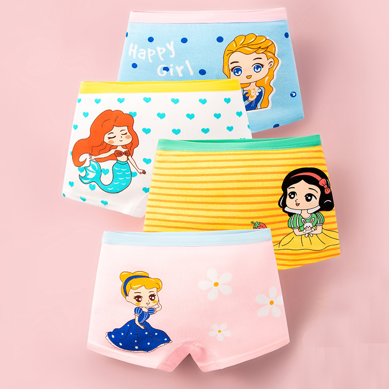 아동 속옷, 여아 사각 팬티, A급 면, 노출 방지, 여아 초등학생 사각 팬티, 만화 귀엽고 부드러운