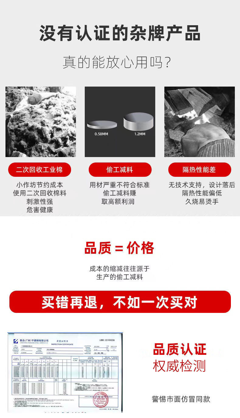 • 국가 표준 304 강화 및 두꺼운 모델 - 30년 보증 - 초강력 두꺼운 이중 스토브 50cm+64cm