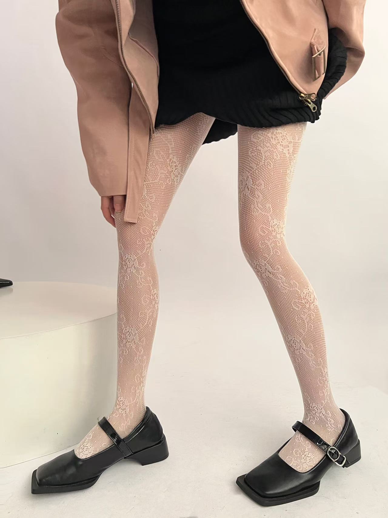 봄과 가을 고대 빛 아시아 뜨거운 소녀 복고풍 섹시한 꽃 도트 메쉬 스타킹 Yabi Wasteland Millennial y2k 회색 스타킹스토어 가기