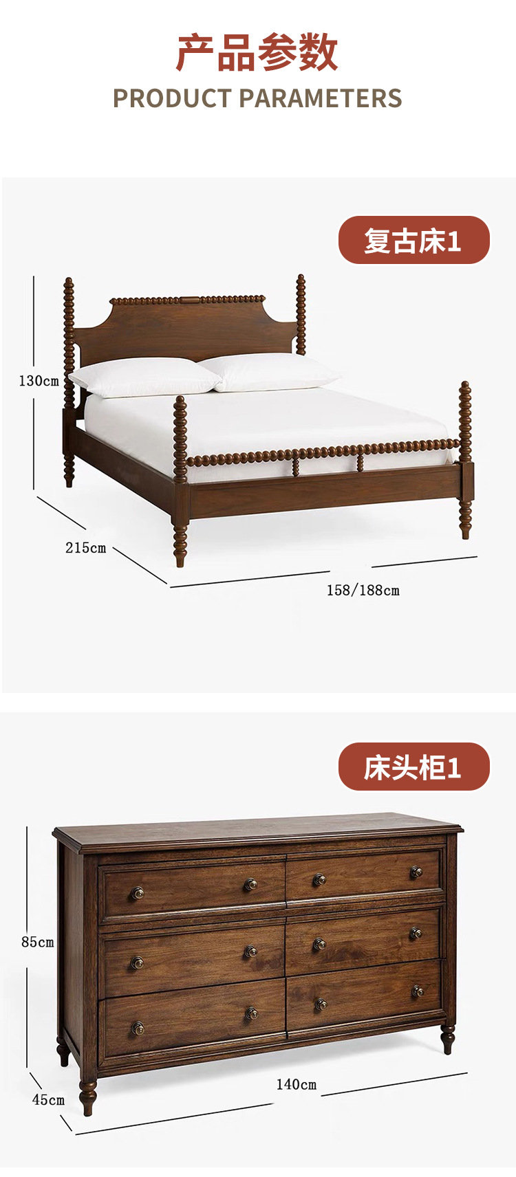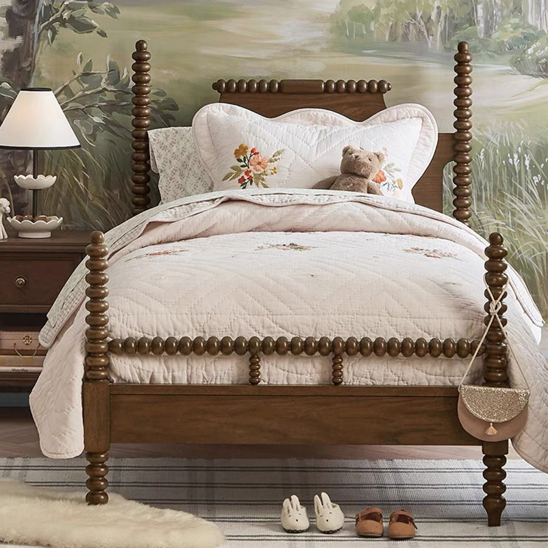 북미 검은 호두 나무 침대 현대 간단한 미국 복고풍 침대 새로운 중국 스타일 침대 침실 전체 단단한 나무 더블 침대