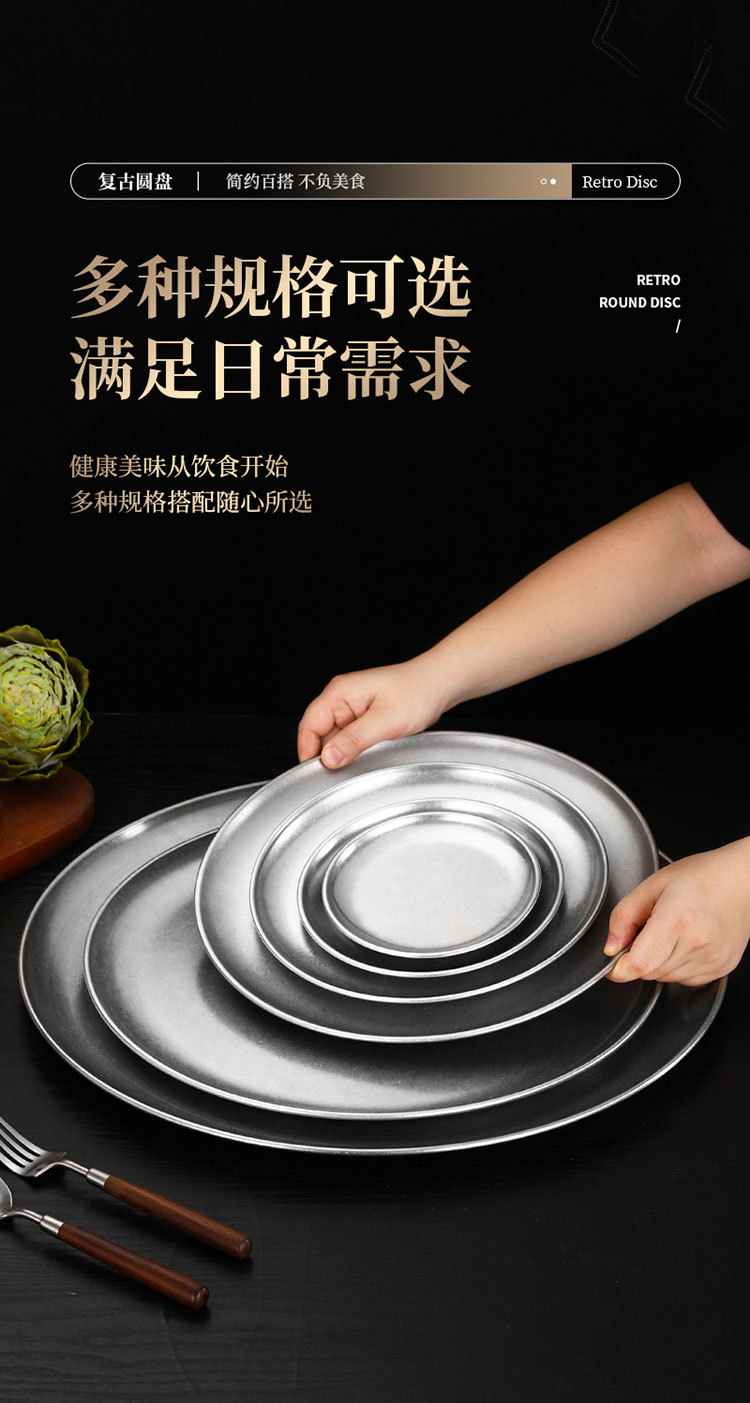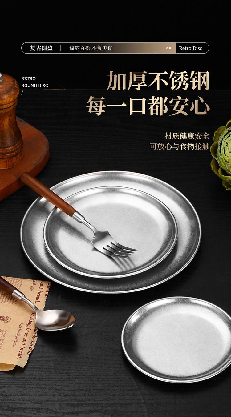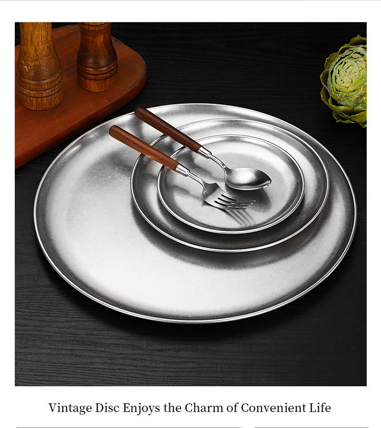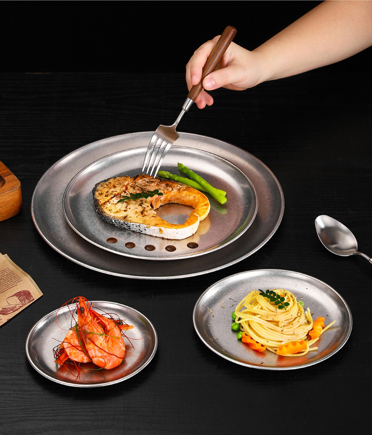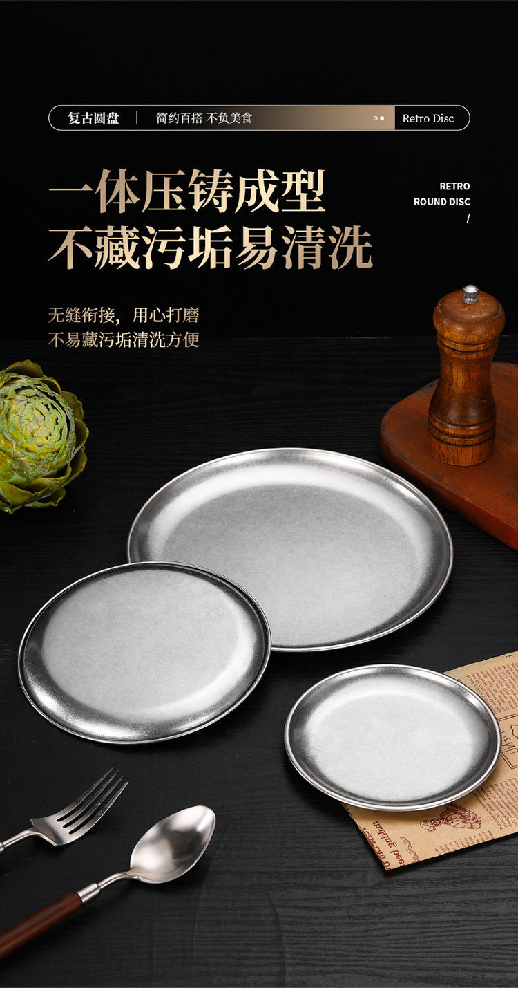 레트로 올드 한국식 바베큐 접시 스테인레스 스틸 뼈 접시 ins 카페 트레이 과일 접시 케이크 접시 아침 식사 접시