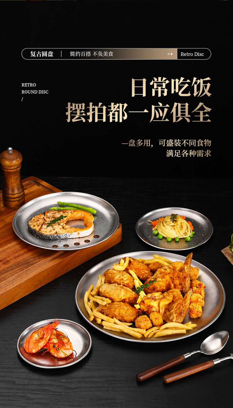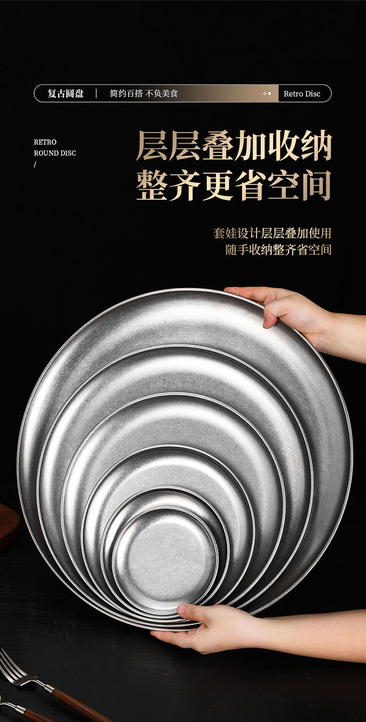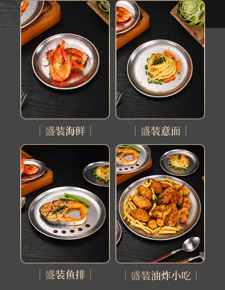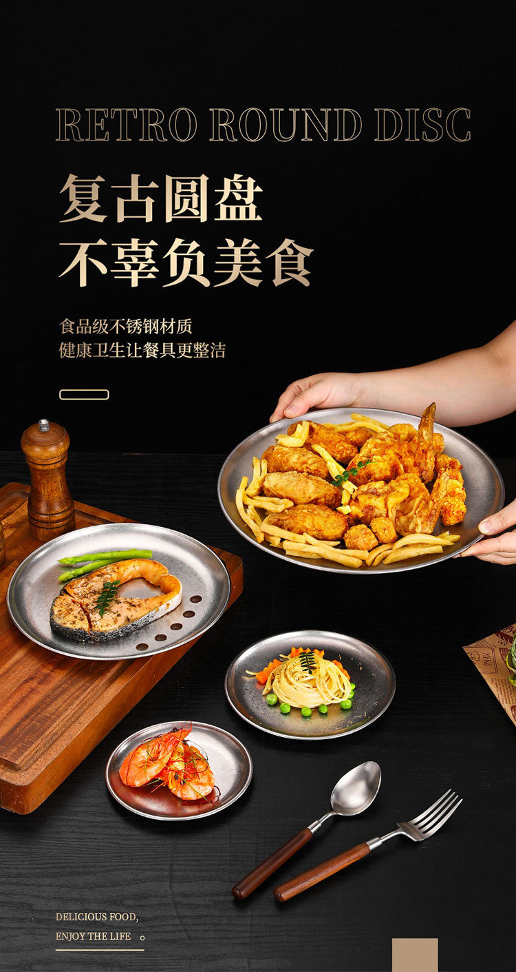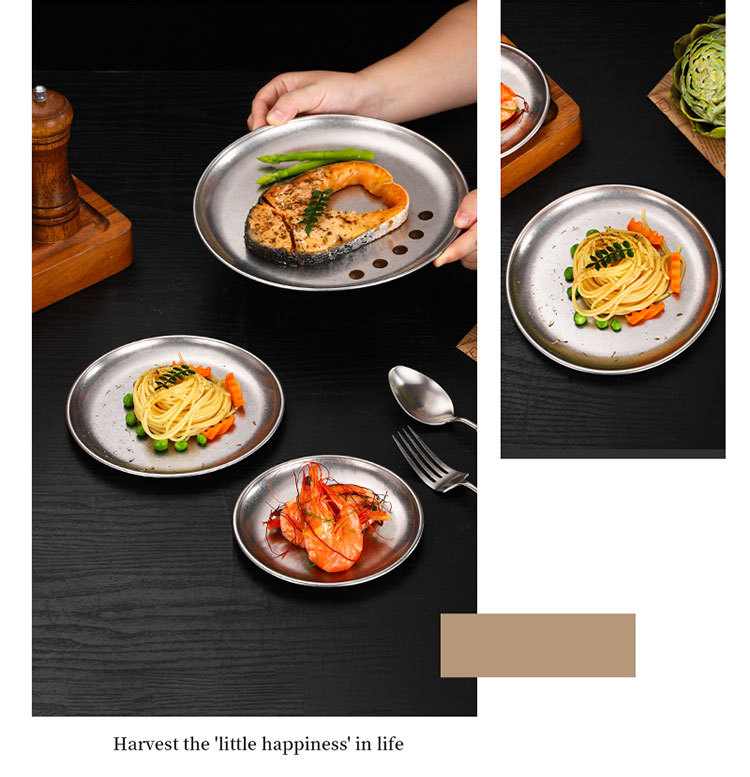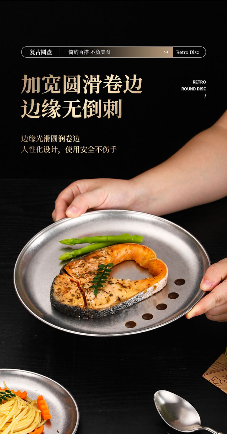 레트로 올드 한국식 바베큐 접시 스테인레스 스틸 뼈 접시 ins 카페 트레이 과일 접시 케이크 접시 아침 식사 접시