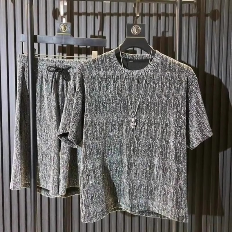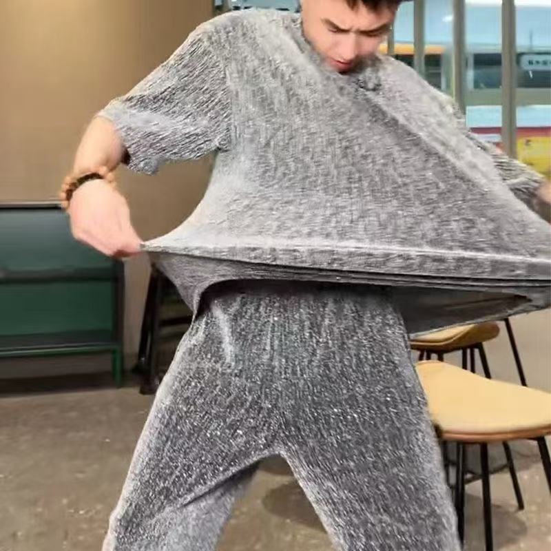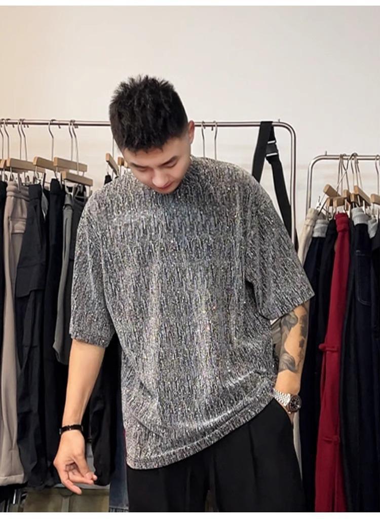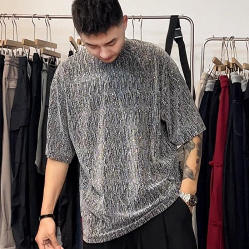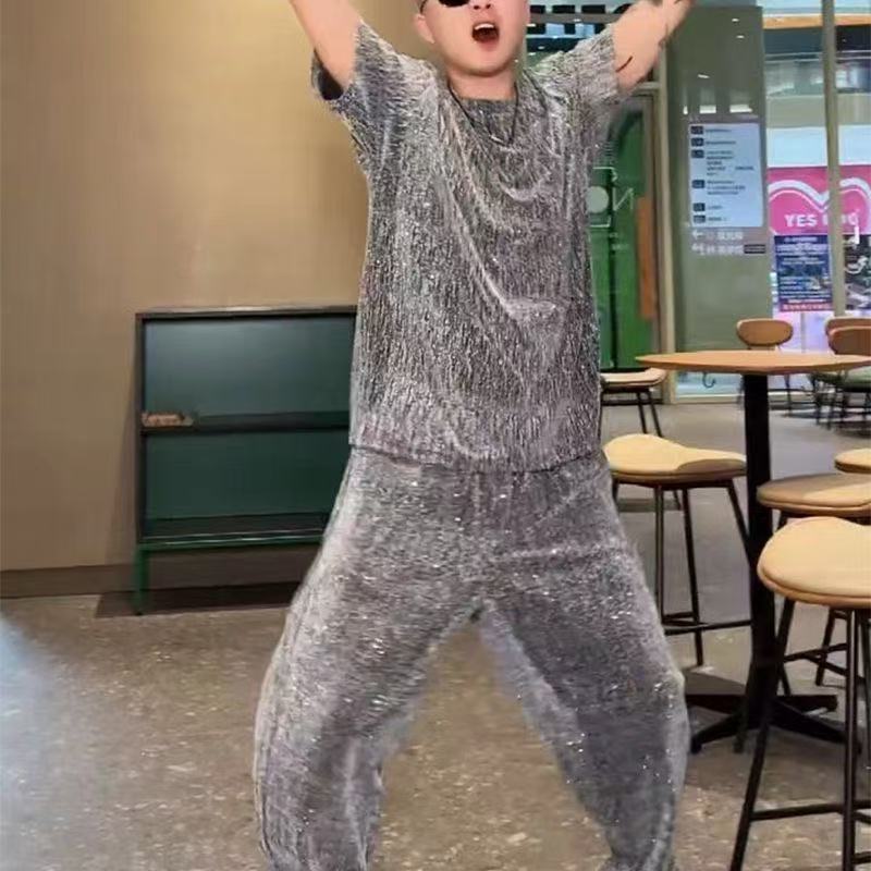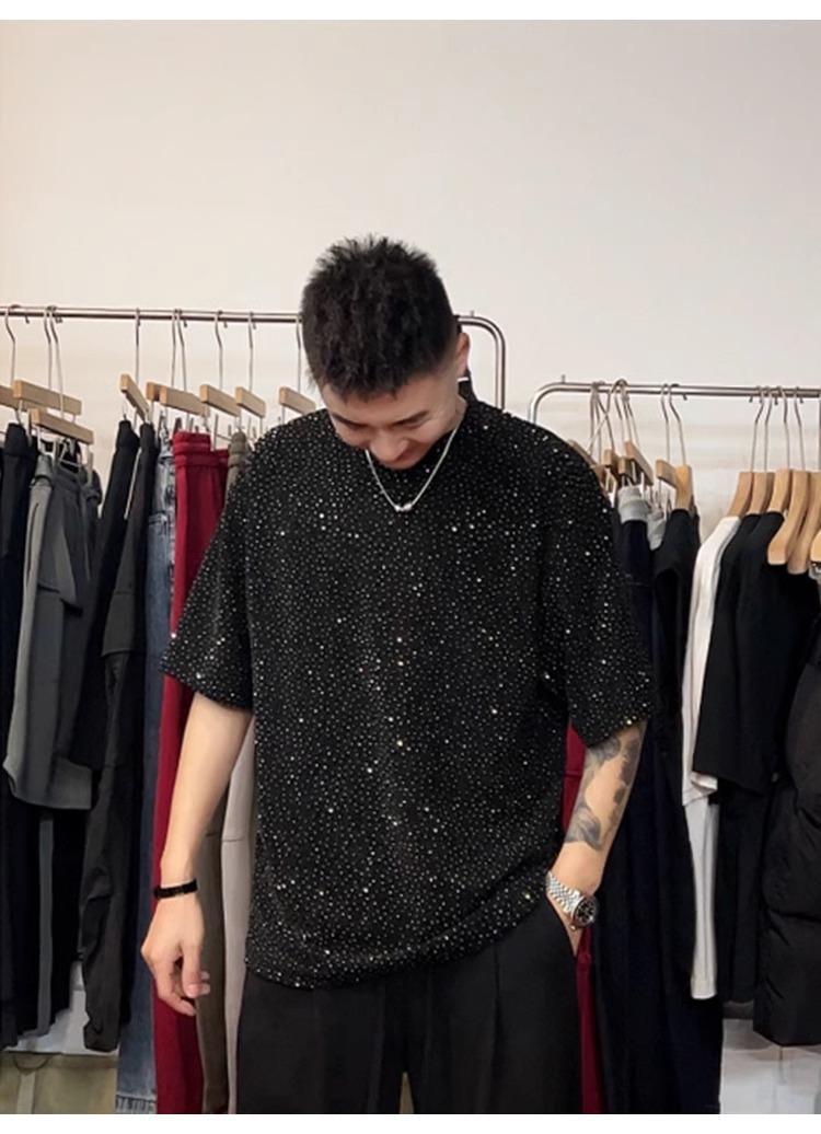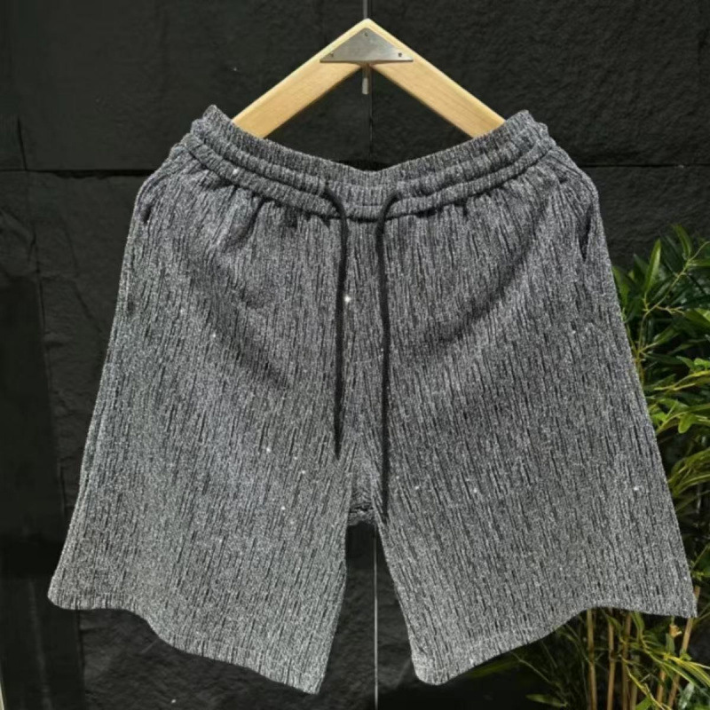 여름 신작 남성용 라이트 럭셔리 안개꽃 핫 다이아몬드 슈트 인터넷 연예인 트렌드 루즈하고 통기성이 좋은 5부 소매 반바지 투피스 세트