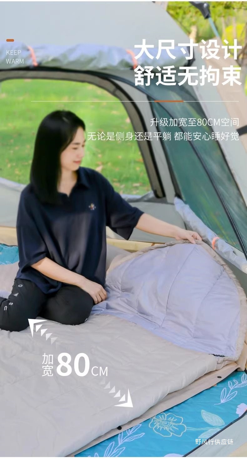 야외 성인 캠핑용 침낭, 더블 텐트, 야외 캠핑, 밤새도록 잠자는 침낭, 방한, 여행, 먼지 방지, 사계절 모두 사용 가능스토어 가기