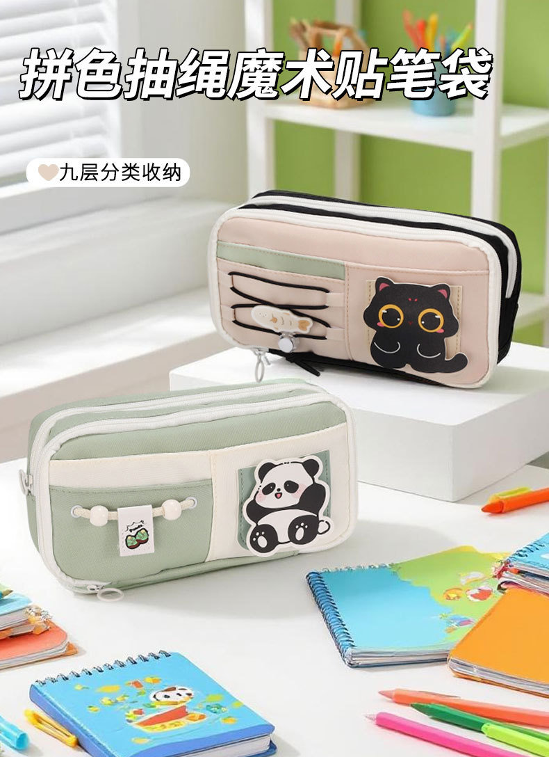 2025 새로운 기능 고급스럽고 귀여운 졸라매는 끈 연필 가방 문구 상자 대용량 중학생 간단한 필통스토어 가기
